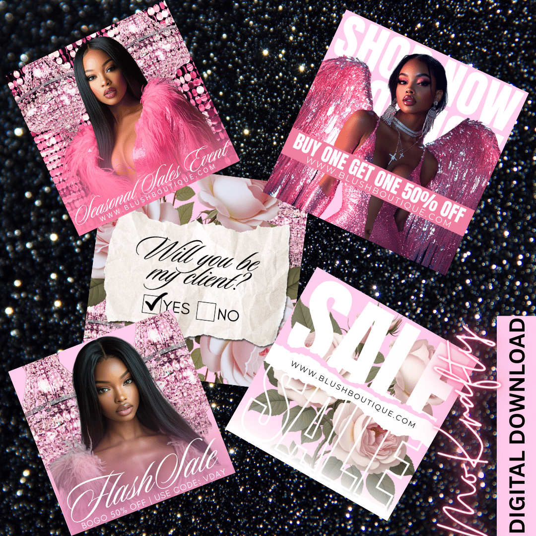 Upgrade your marketing with this Pink Valentine Canva Template Bundle! This bundle includes 5 fully editable, high-end, feminine promotional templates perfect for boutiques, beauty brands, and small businesses. Designed for Valentine’s Day and seasonal sales, these templates help you promote BOGO deals, seasonal events, and special offers in a stylish, cohesive way.