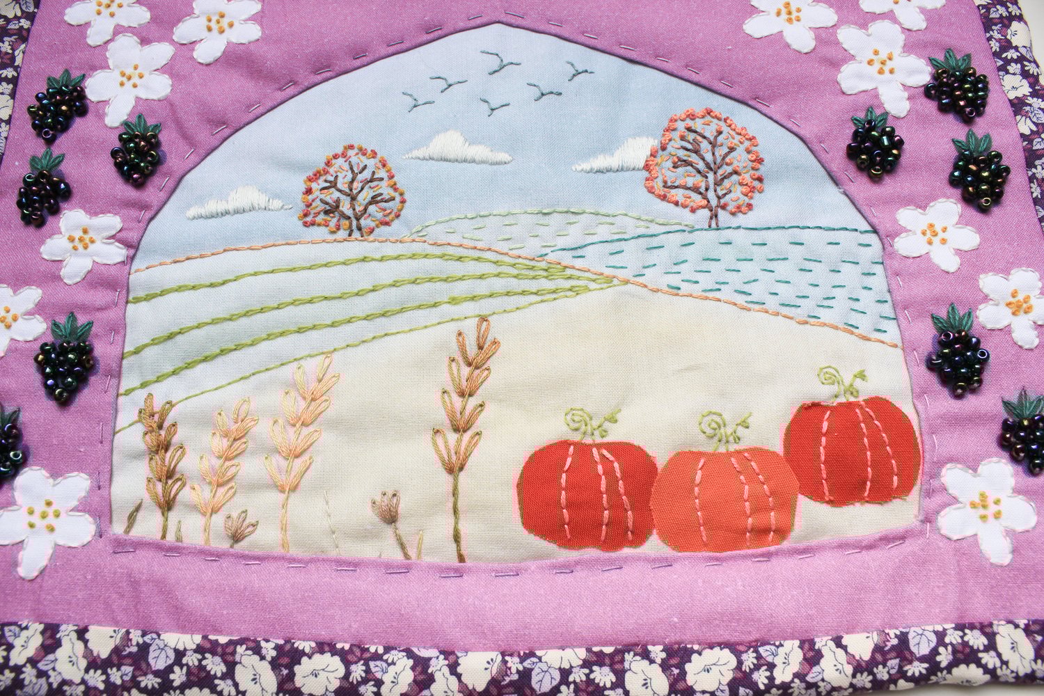 Through a series of 3 video lessons, I will walk you through the techniques for how to create this charming mini quilt. Using appliqué, hand sewing and embroidery techniques, you will create this seasonal picture, perfect to display throughout the month of October. The quilt is double layered, making the design really unique and eye catching.