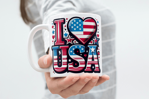 I Love USA 4th of July Mug Wrap Sublimation Design