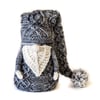 Gorgeous twisted stitch cables trace elegant patterns all over the hat and body. Just like all of my gnome patterns, there are a number of tricks to keep the sewing to a minimum.