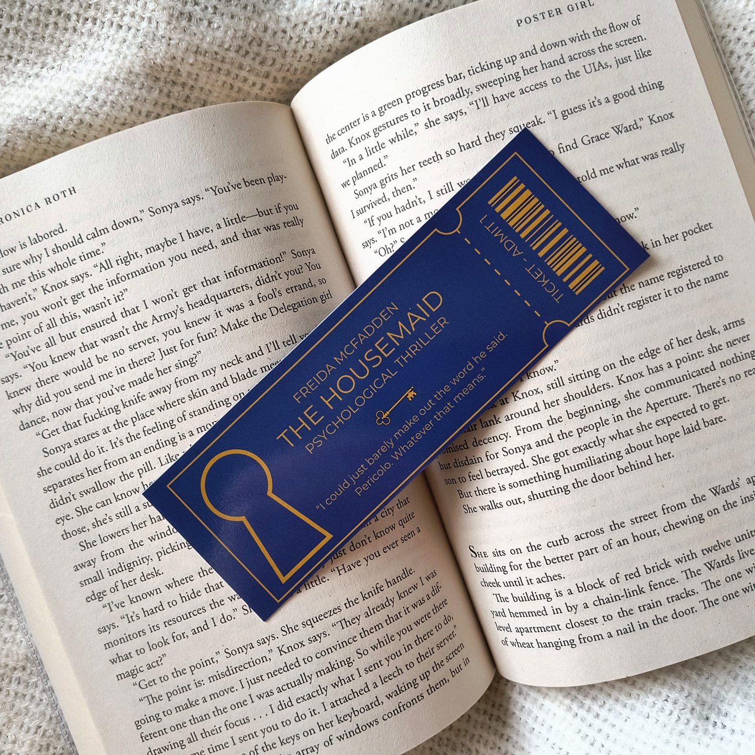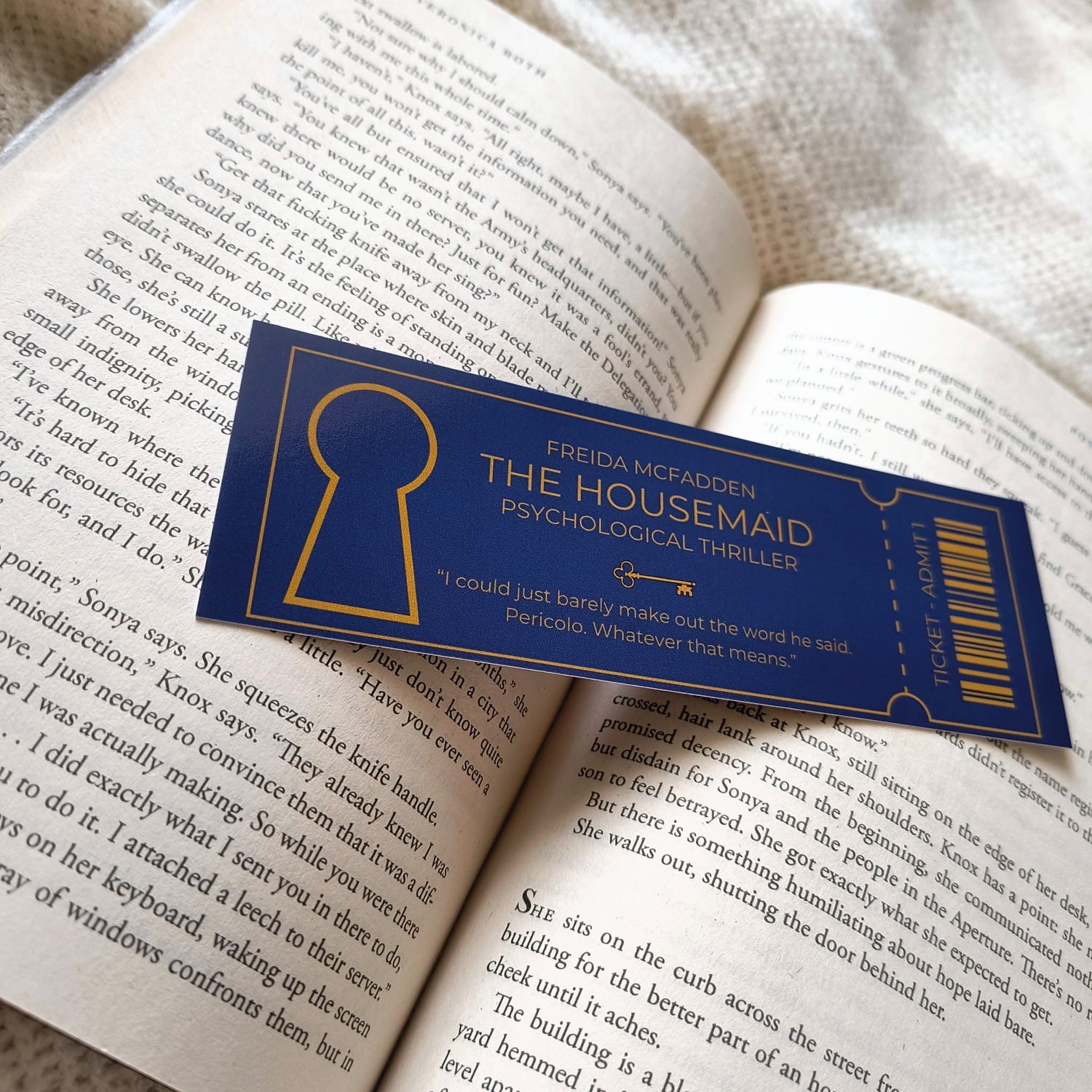 This ticket-style bookmark is inspired by Freida McFadden’s novel The Housemaid.