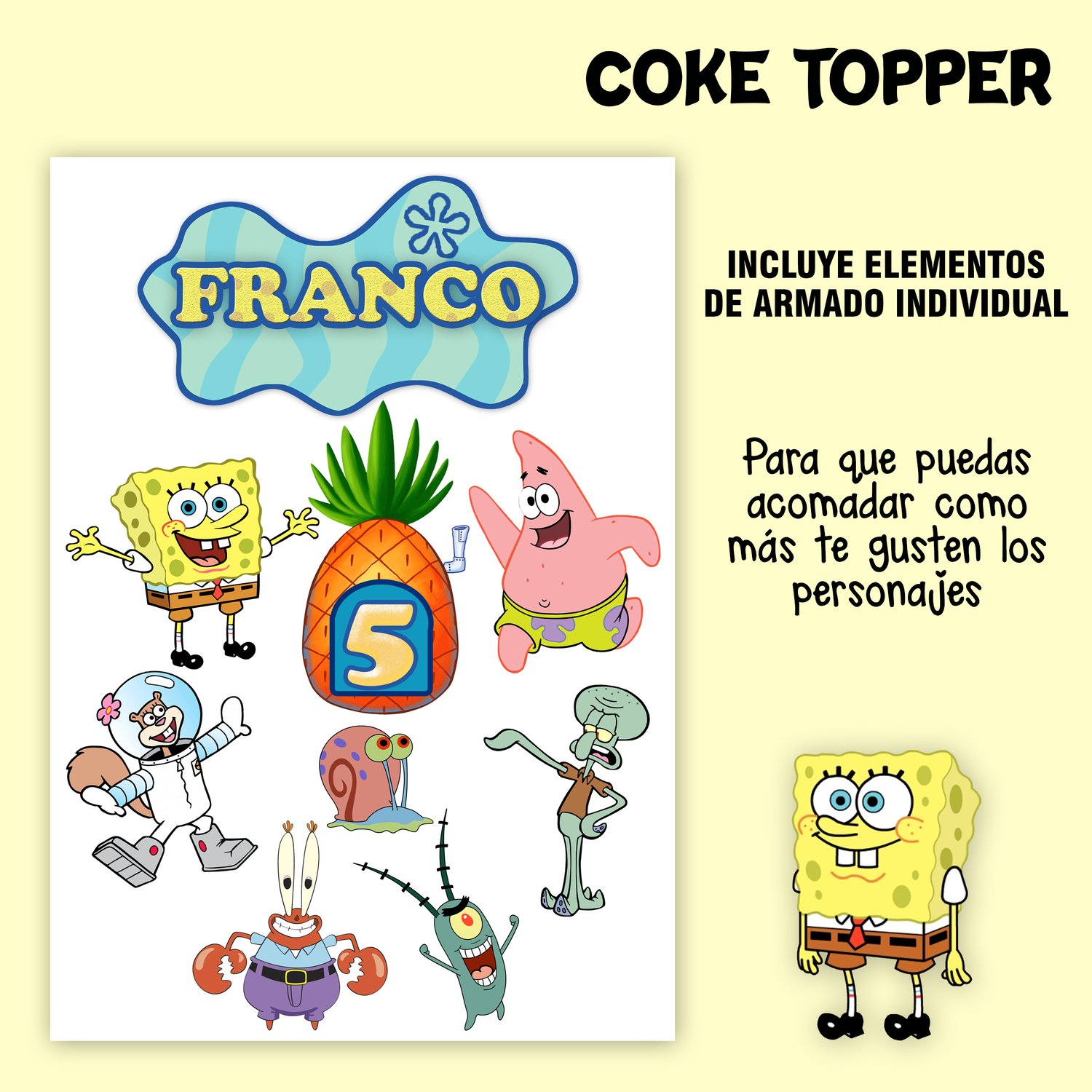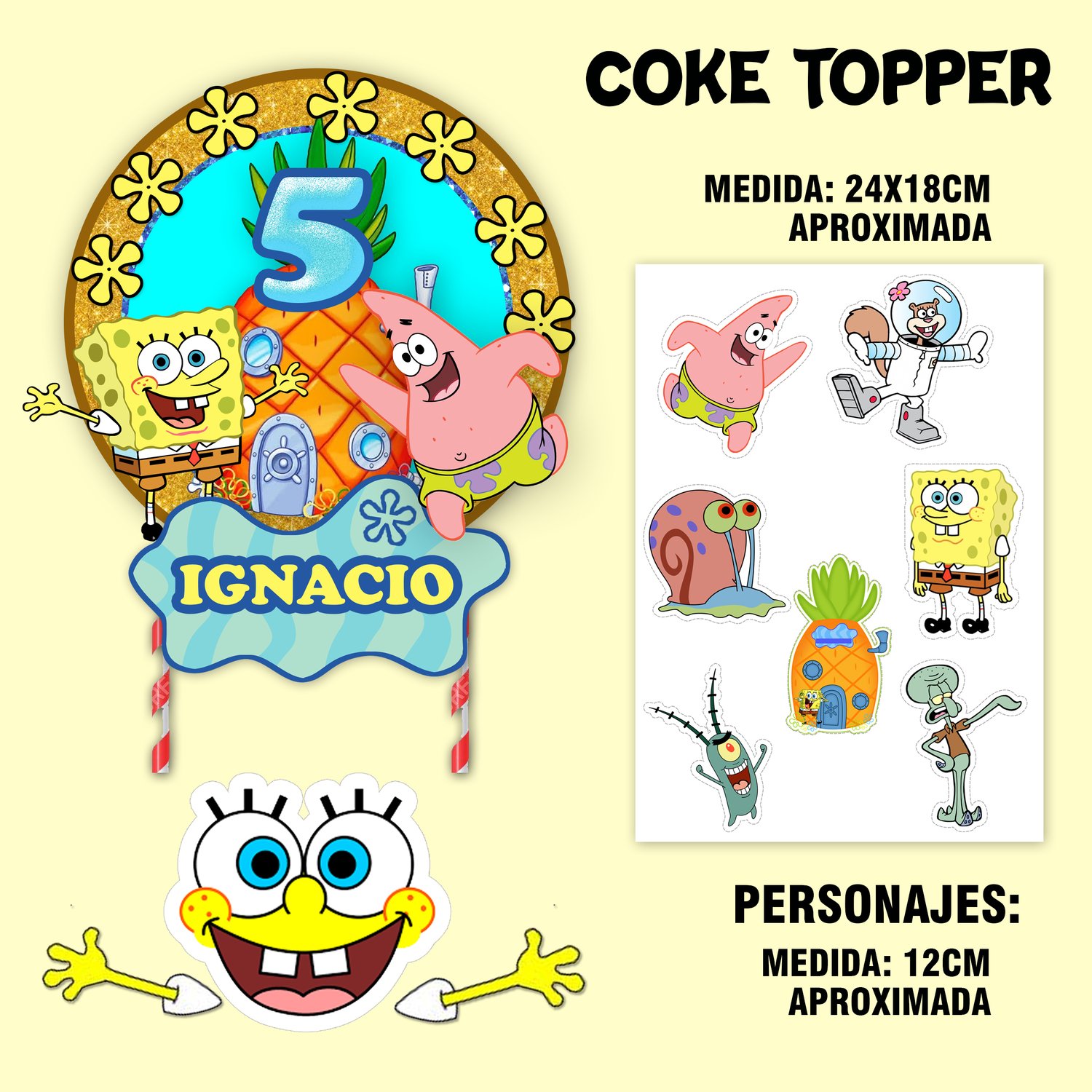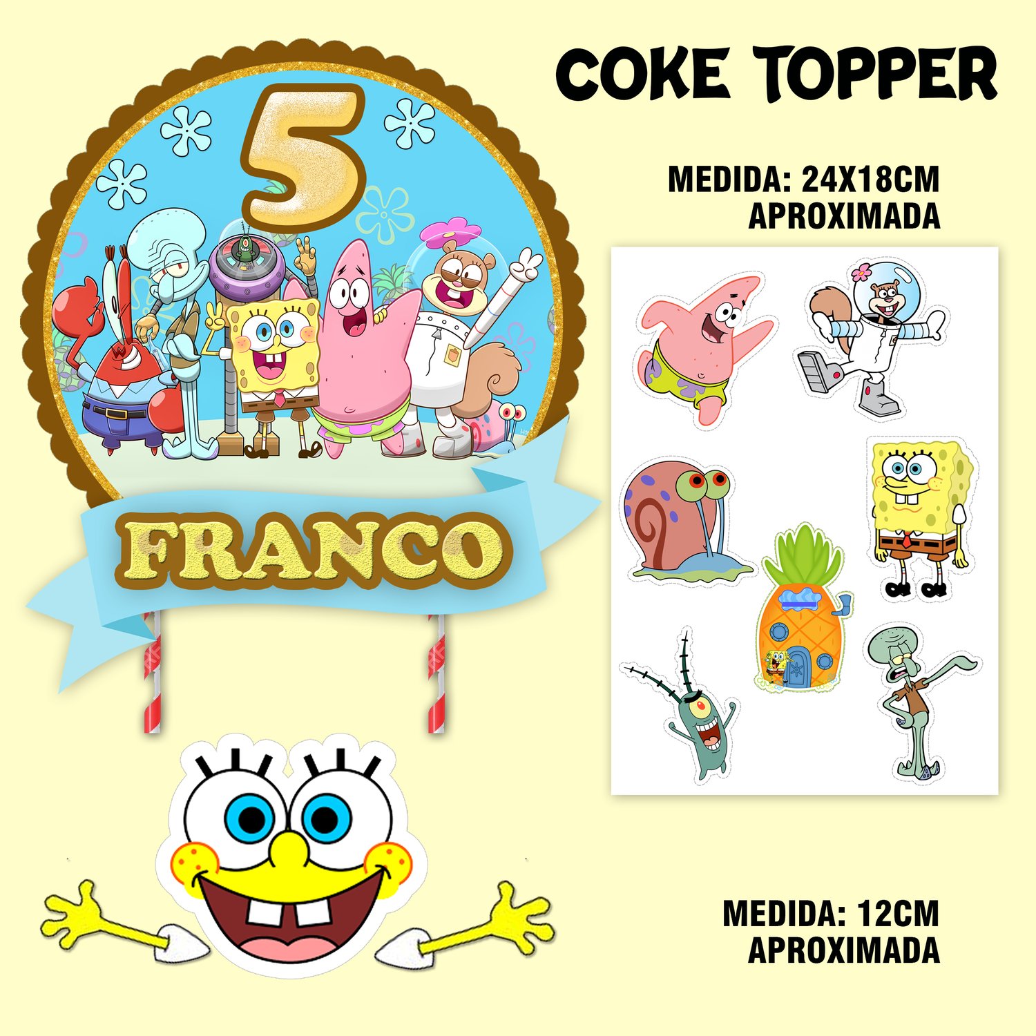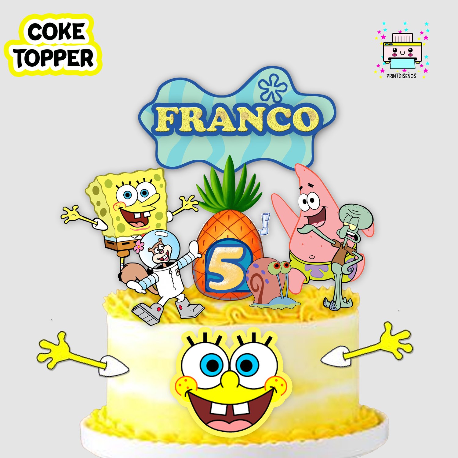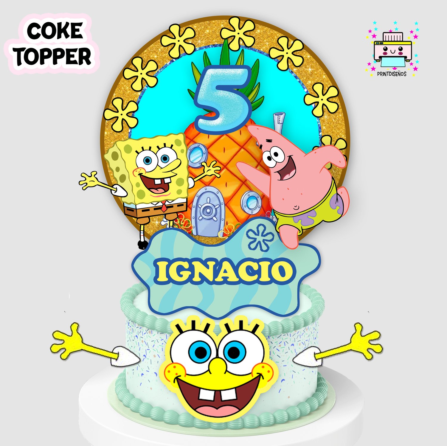 Kit Imprimible Cake Topper Adorno Torta Bod Esponja
