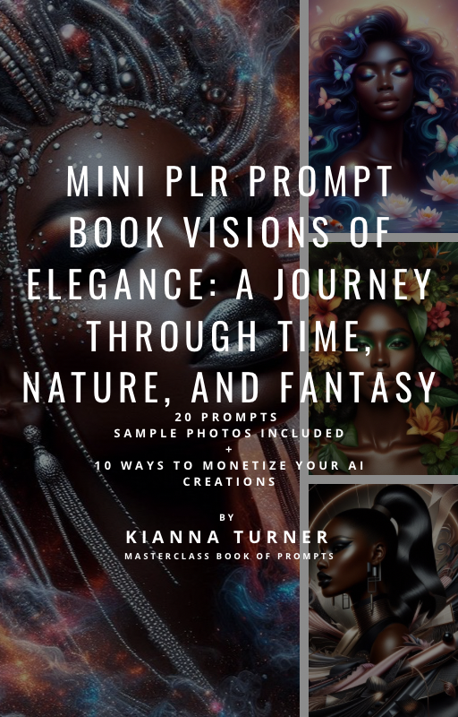 Introducing our latest masterpiece: the Mini PLR Prompt Book Visions of Elegance: A Journey Through Time, Nature, and Fantasy , a treasure trove of creativity featuring 20 unique prompts paired with sample images.