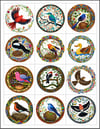 Folk Art Hand-Painted Style Bird Graphics, JPG & PDF, Sticker Pack in 2 Sizes