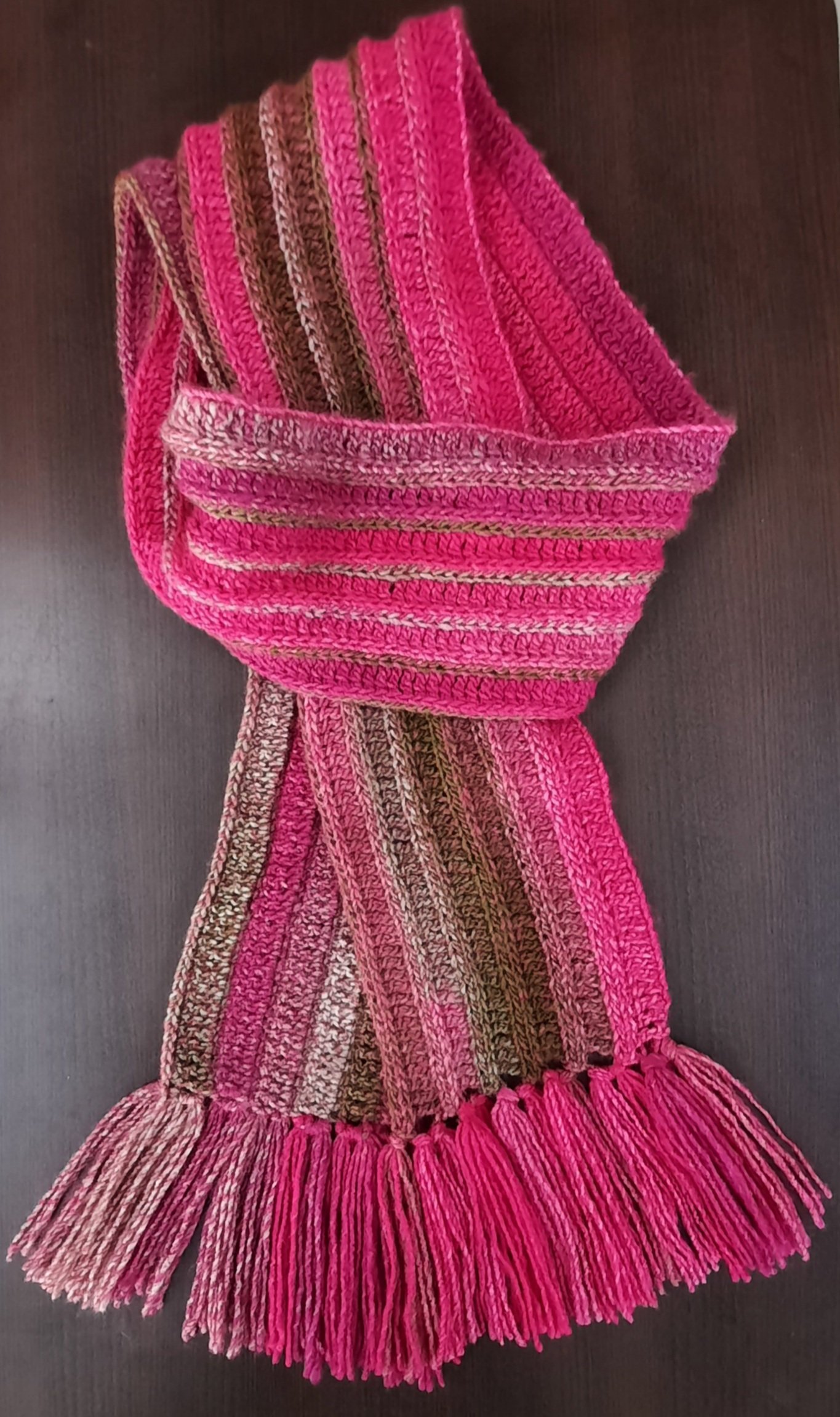 Tracks scarf: A textured scarf to match the tracks beanie, worked lengthwise. Intermediate difficulty. Swipe to see a couple of our tester pics.