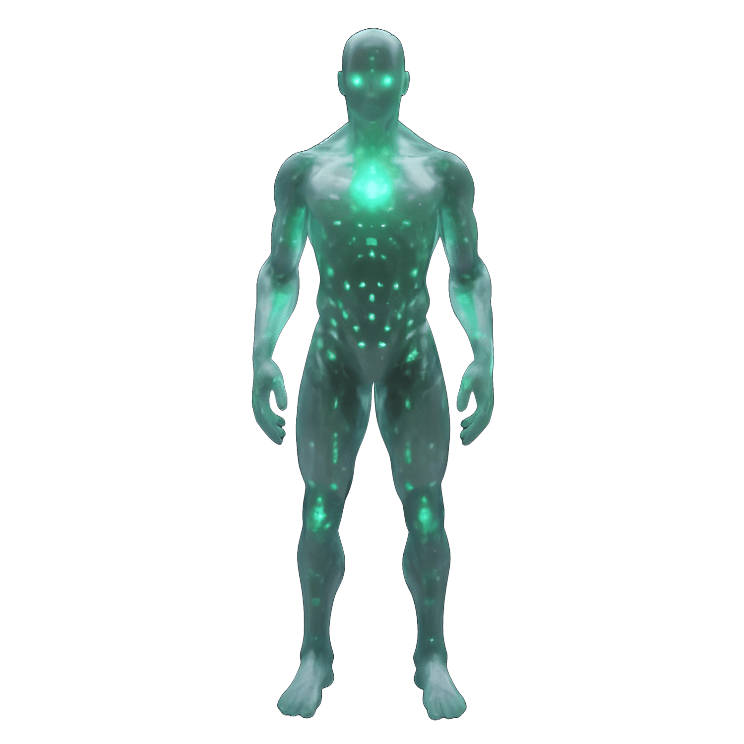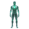 - A translucent energy being with glowing green patterns throughout its form