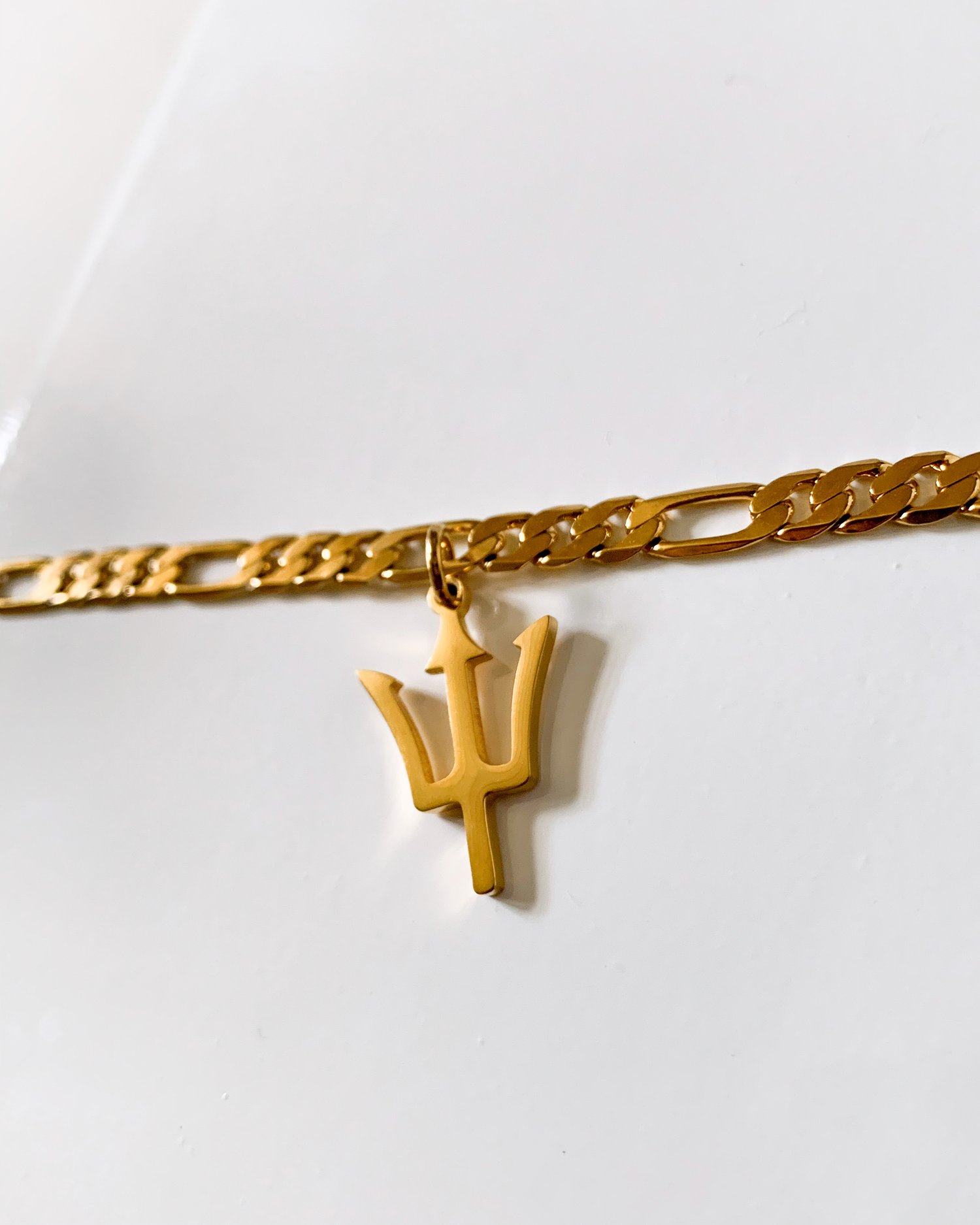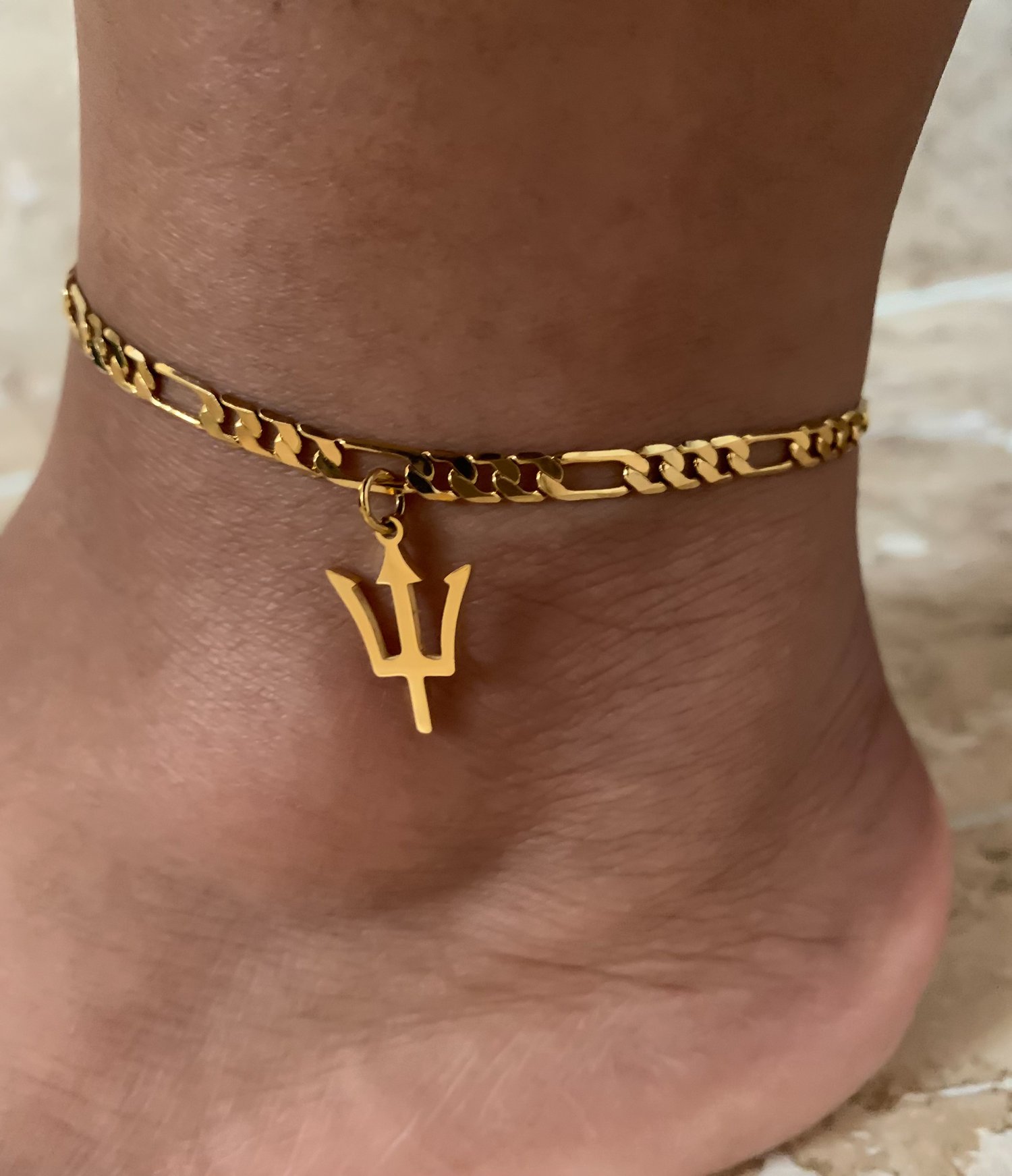 Our Molasses Broken Trident Anklet symbolizes freedom. The broken trident as seen on the Barbadian flag symbolizes our Independence from Britain. Molasses is a byproduct of sugar refining and a popular sweetener for beverages and syrup. Barbados’ sugar industry holds a significant place in our history and so does molasses.