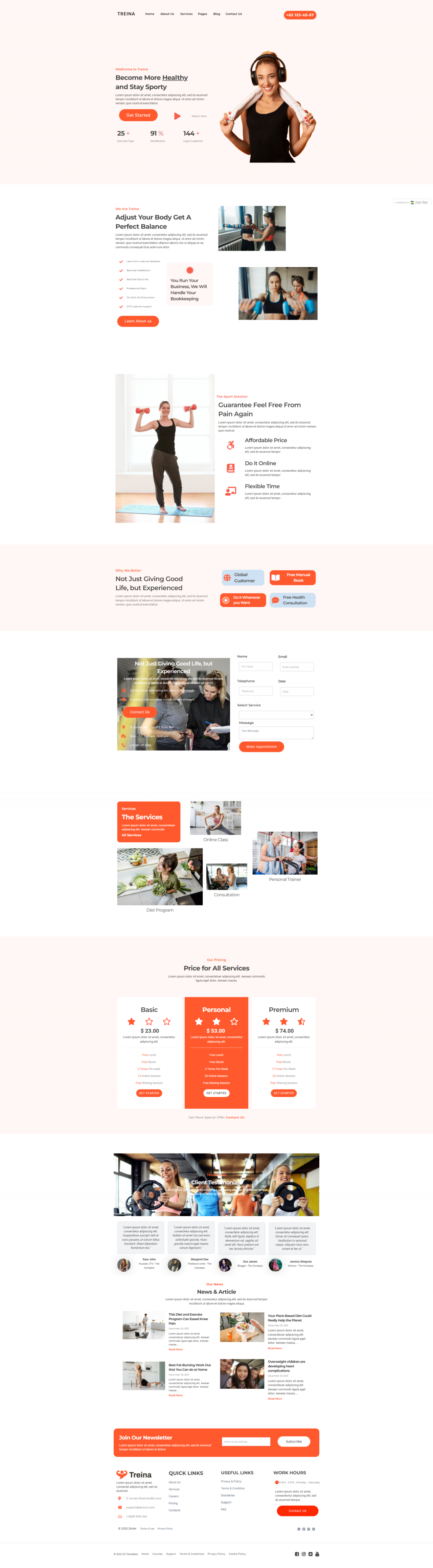 Achieve your fitness goals with The Garage Gym & Fitness Center Landing Page template. Designed for gyms and fitness centers, this template features class schedules, trainer bios, client testimonials, and facility information.