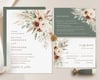 Boho Wedding Invitation Template, Sage Minimalist Wedding Invite Set, Elegant Floral Pampas Details Card, Terracotta Printable RSVP