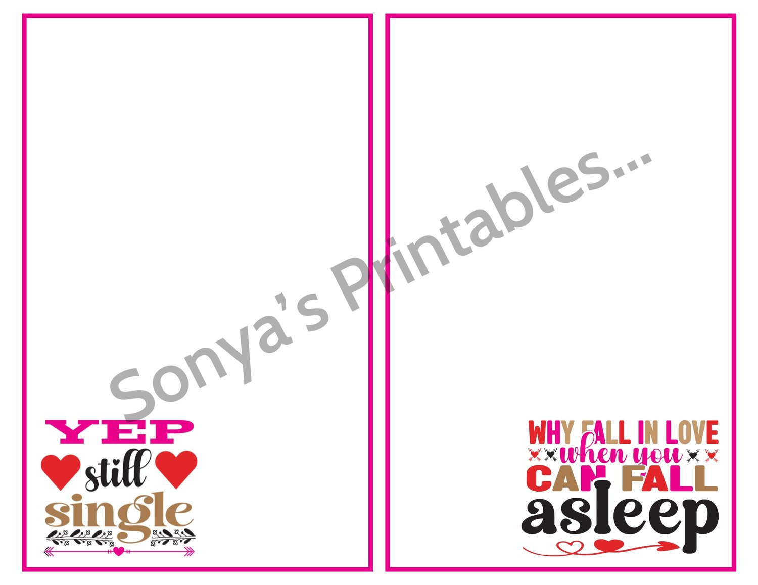Say 'I ❤️ ME!' with these 8 one-of-a-kind 🤪 anti-Valentine note cards! Perfect for those not feeling the love this year, these cards will let you express your true ❌ emotions in a fun, witty way. Whether you're sending 💌 paper, cards, or stationery, these anti-Valentine note paper have you 🤗covered. 💌 Your 8 unique note cards will be delivered on 4 PDF pages.