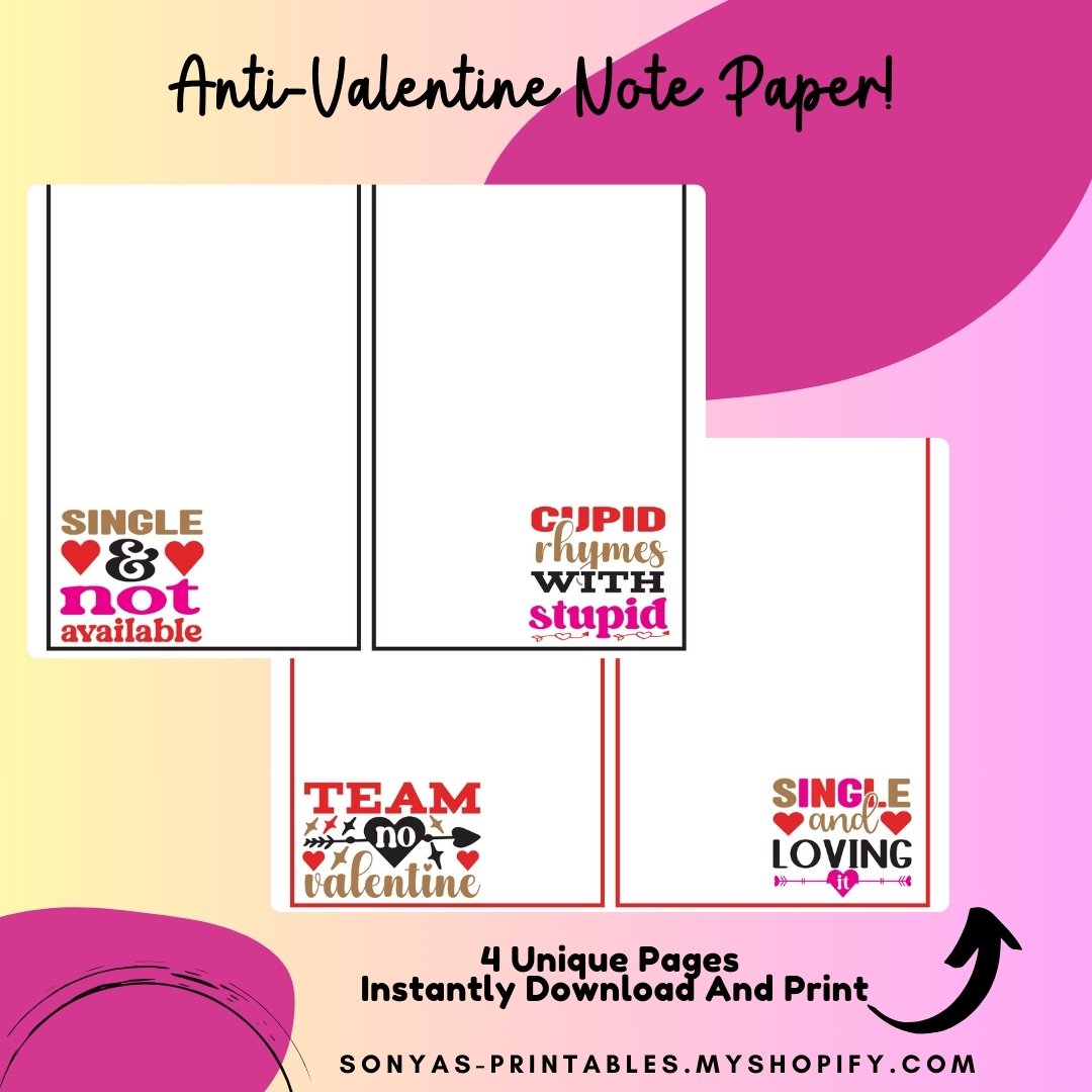 8 Anti-Valentine Note Cards | Printable Anti-Valentine Note Paper | Anti-Valentine Stationery