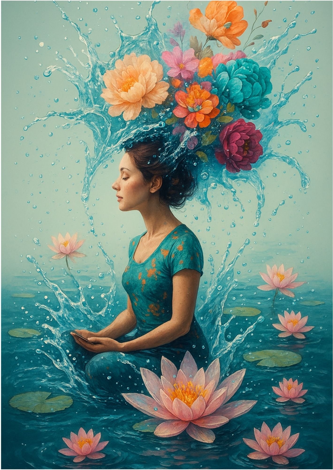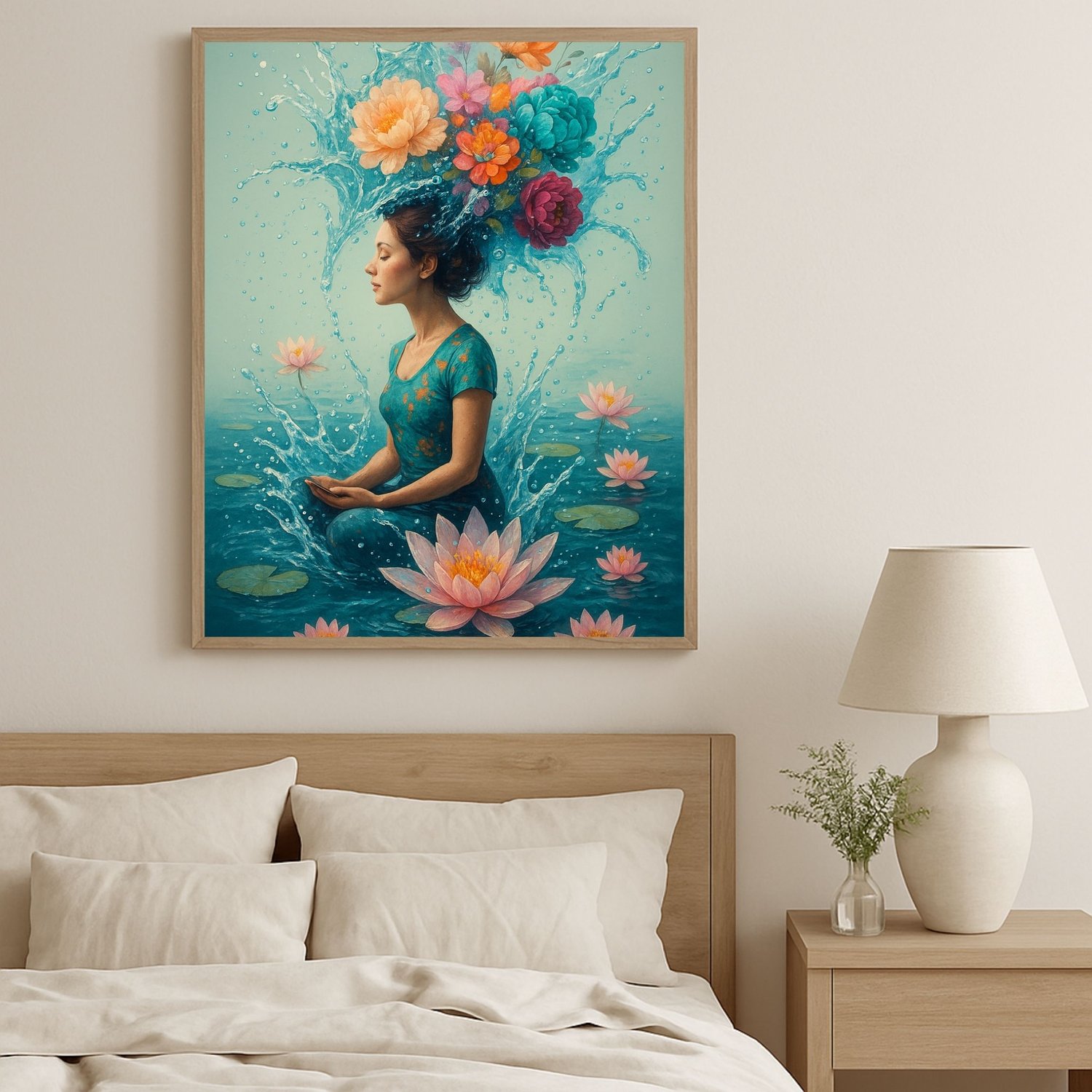 Drift into serenity with “Waterborne Reverie,” a dreamlike watercolor portrait from the Elemental Muse collection. This piece captures the quiet strength of a crowned figure immersed in flowing tides and lotus blooms — a symbol of inner calm and emotional depth. Perfect for meditation spaces, bedrooms, or anywhere you seek peace and presence. Provided in high-resolution for beautiful at-home printing in multiple sizes.