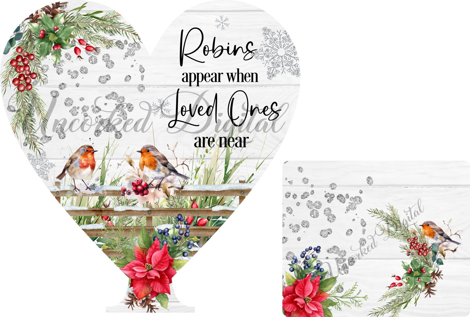 Robins appear tea light heart design with and without photo space designed to fit the blanks from Woodform Crafts.
