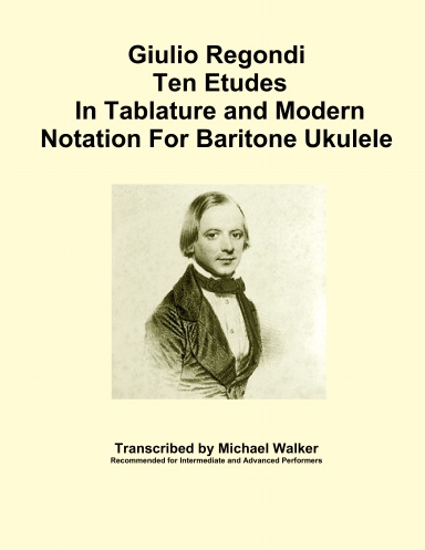 Here are Etudes by Giulio Regondi, a child prodigy and master of the guitar during the Romantic Period, transcribed for the baritone ukulele. Most are also playable on the tenor and soprano ukulele and, of course, may be played on the guitar. The pieces are somewhat more difficult and are recommended for intermediate and advanced players.