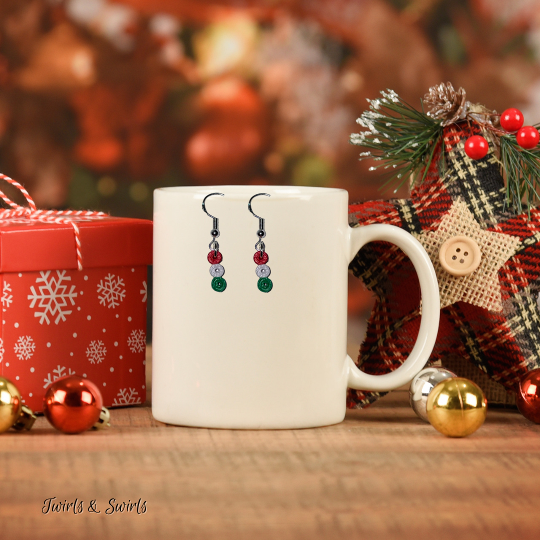 Small in size but big on holiday cheer! These earrings feature three bright pops of festive color—green, red, and white—perfect for adding a subtle holiday cheer to your Christmas look.