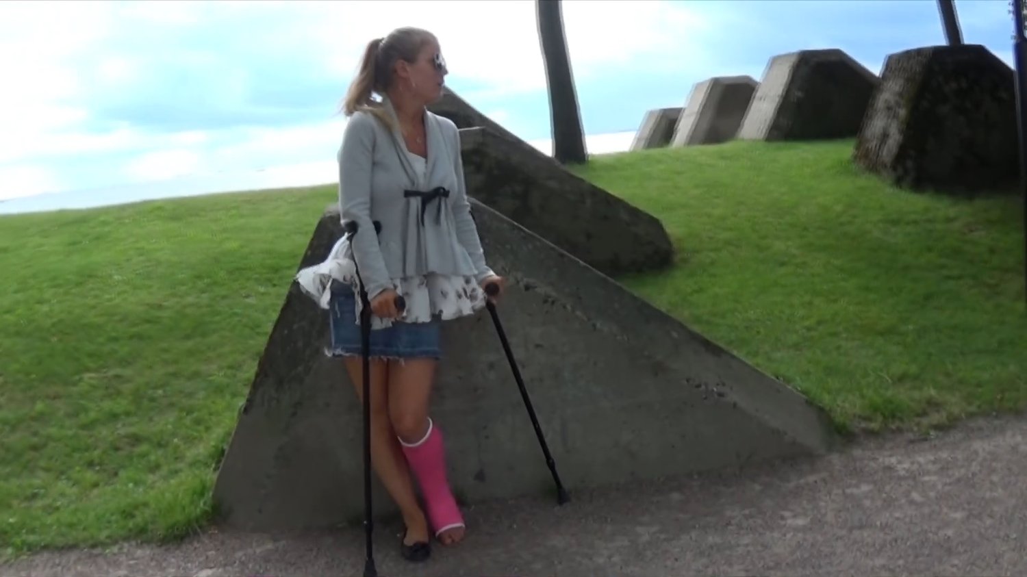 This is a fantastic crutching clip with Ice. She is still in her pink term SLC and today we follow her when she walk along the sea. Great clip as usual with lots of crutching and some closeups of he cast and toes.