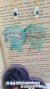 Crafted from shimmering resin, these lip-biting impressions are a sassy nod to the brat in you — daring, mischievous, and just a little bit chaotic. Watching over it all is the iconic evil eye charm, offering protection (or maybe just judging you a little) from the drama you stir. Flanked on either side by a single pearl bead for a touch of unexpected class — because even brats have standards.