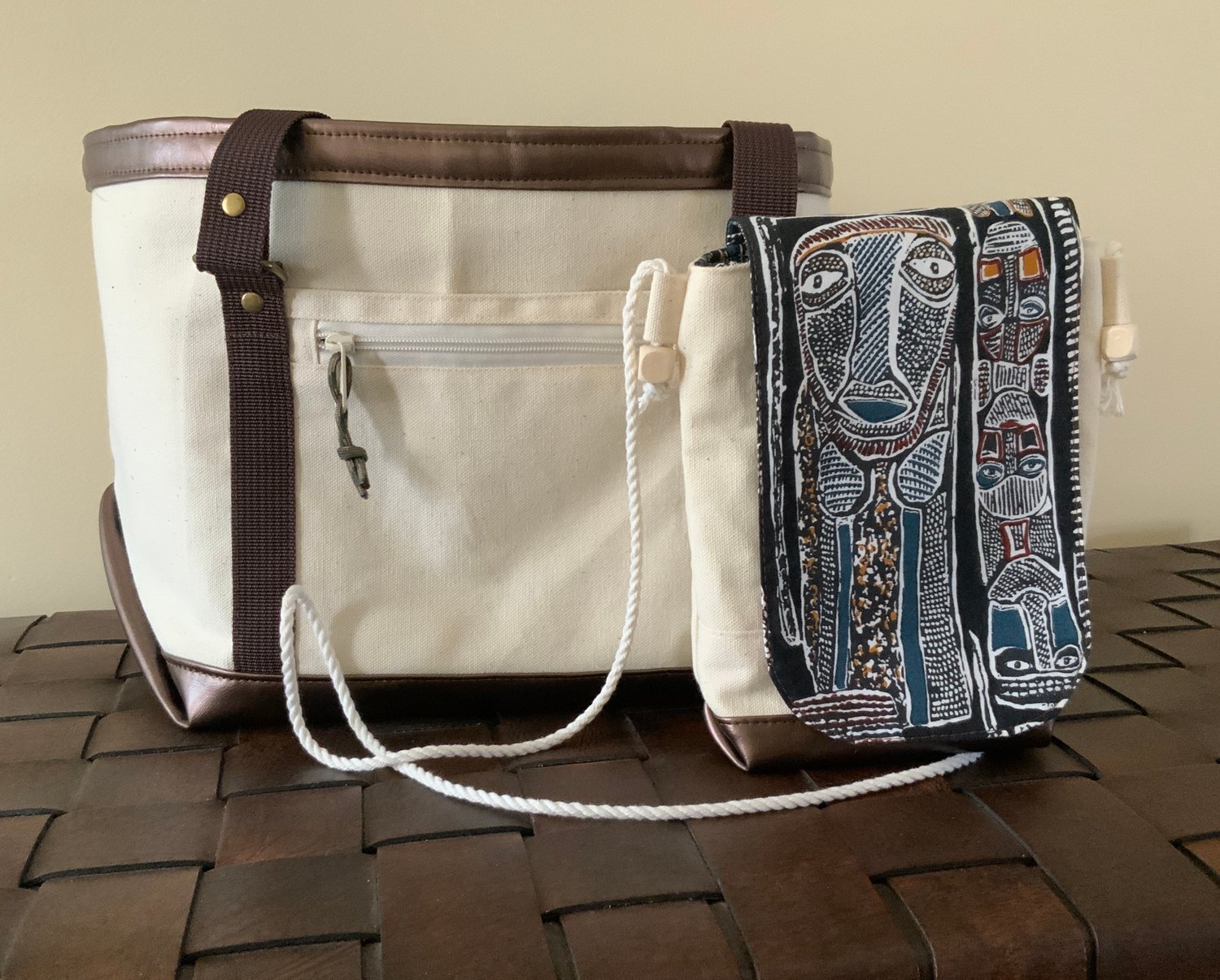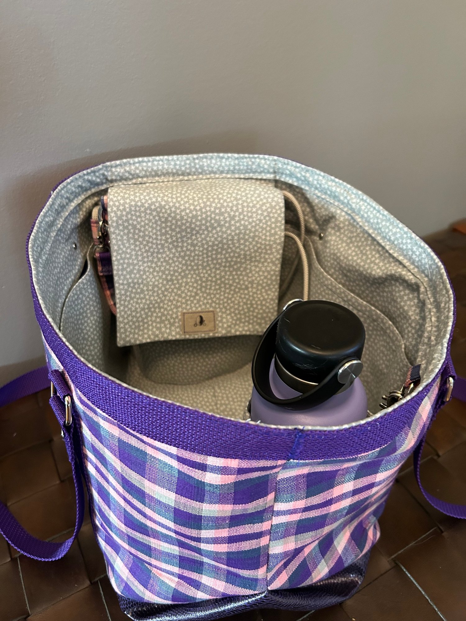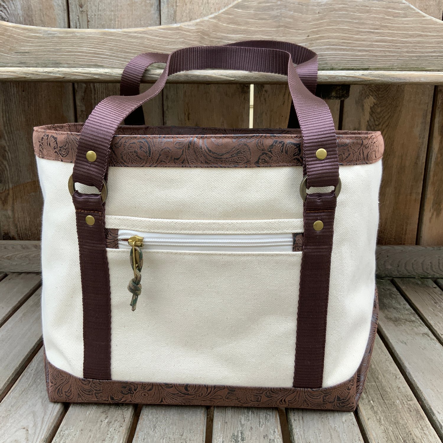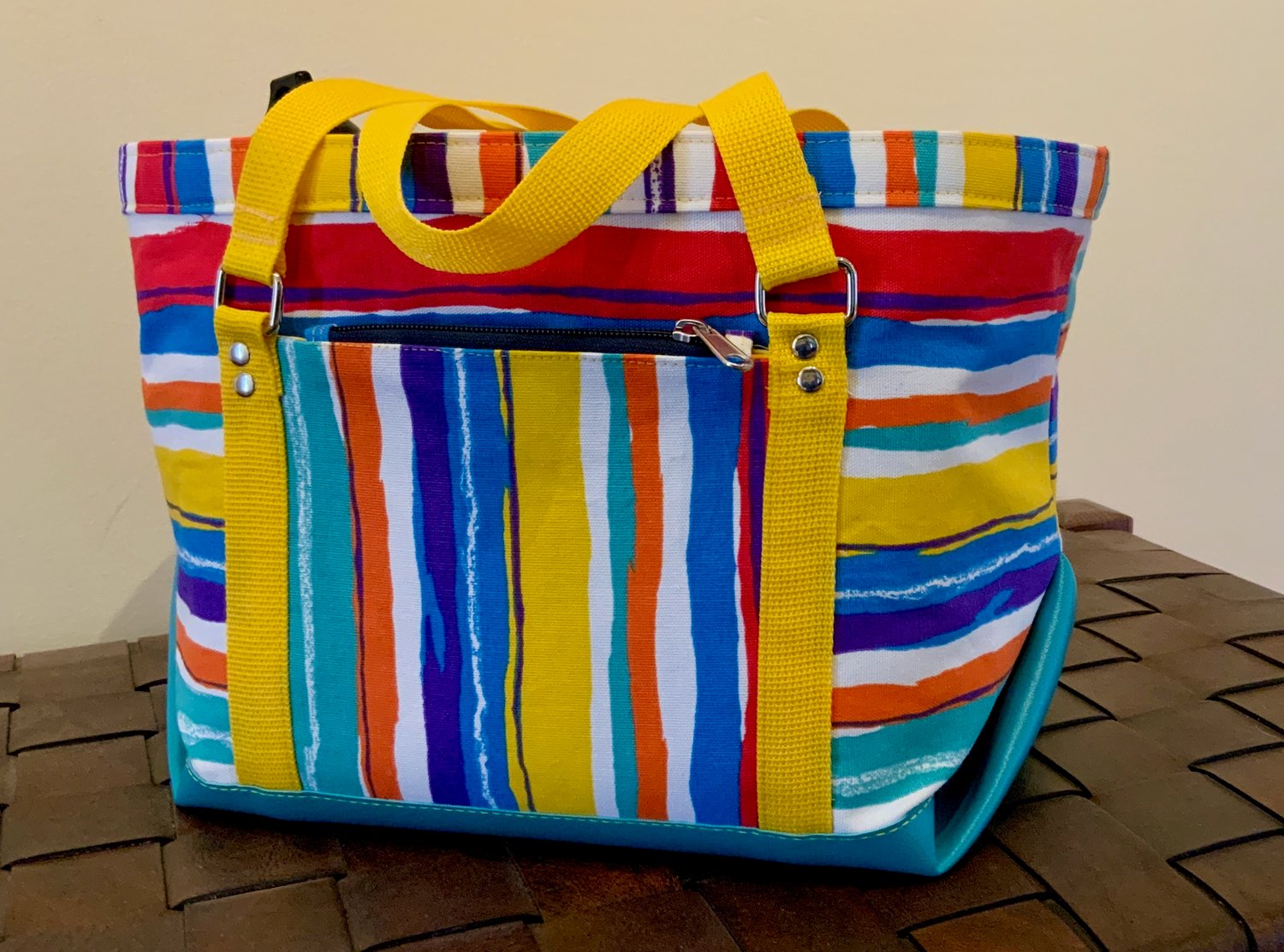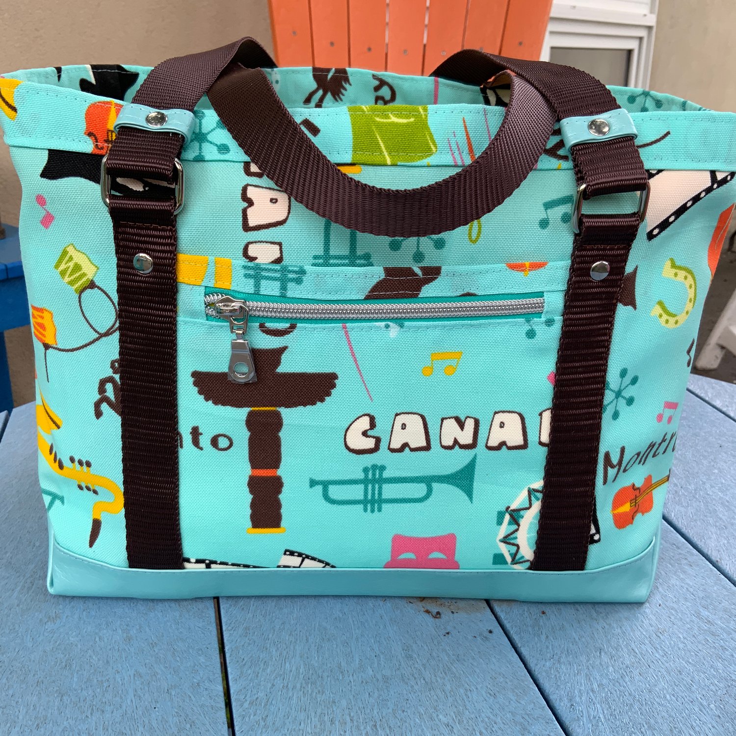 BIG is a hefty, everyday tote and yes, he’s BIG—12” long x 8” wide and 10” deep (30.5 x 20.3 x 25.4 cm)—which makes this the perfect tote for a trip to the market, or the beach, or the park, or art class, or sewing retreat. Well, you get the idea.