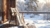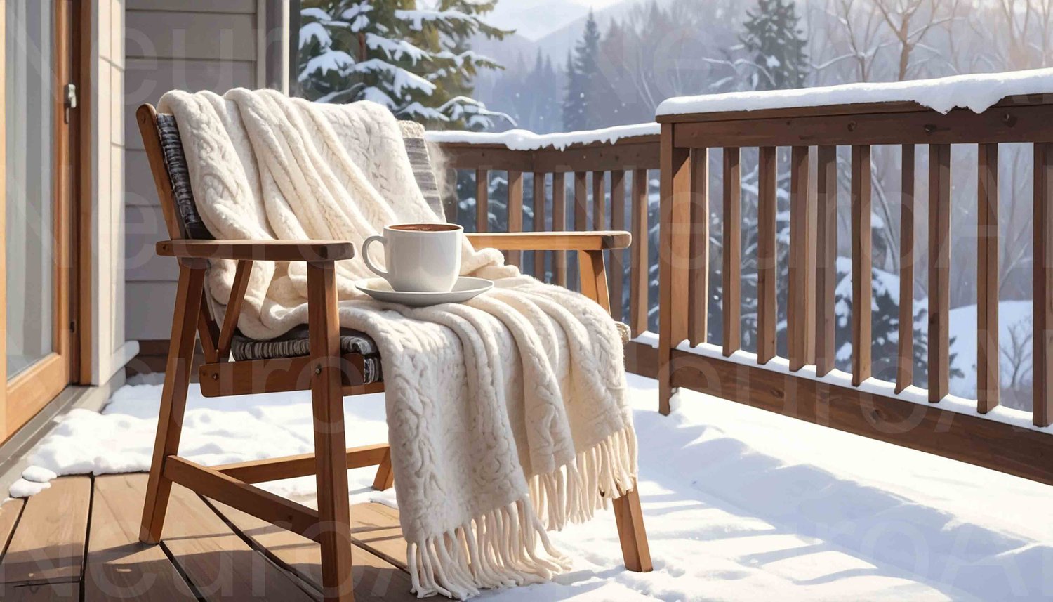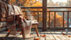Cozy autumn relaxation with coffee on cabin porch
