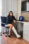 She has to wear formal clothes to meetings and her boss asks her to show her cast.