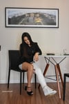 After all the day's work and meetings she'll change into more comfortable clothes for a walk in public in her pretty cast and now in a European castshoe.