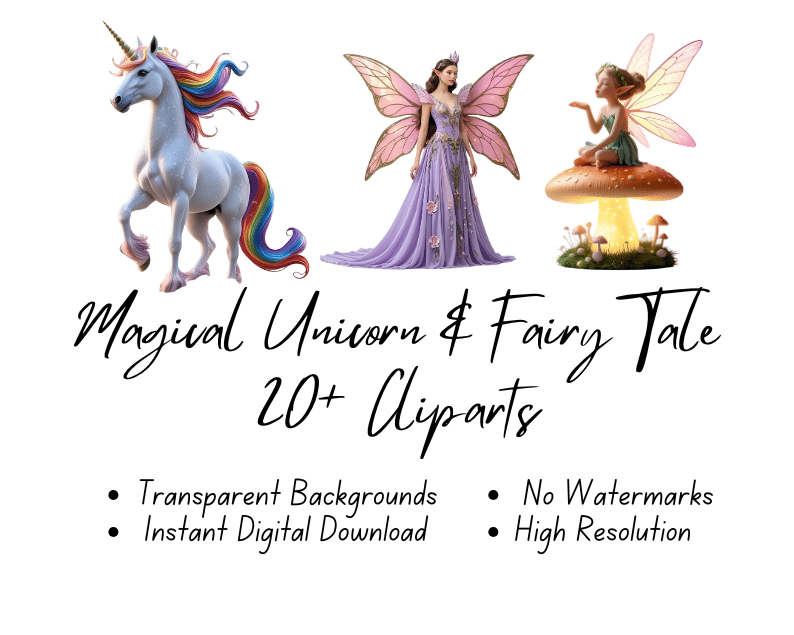 Magical Unicorn & Fairy Tale 20+ Cliparts | Instant Download | High Resolution | Digital Format