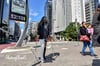 On the traditional São Paulo avenue, she walks alone, crosses the street, uses crosswalks and blends in with the people.