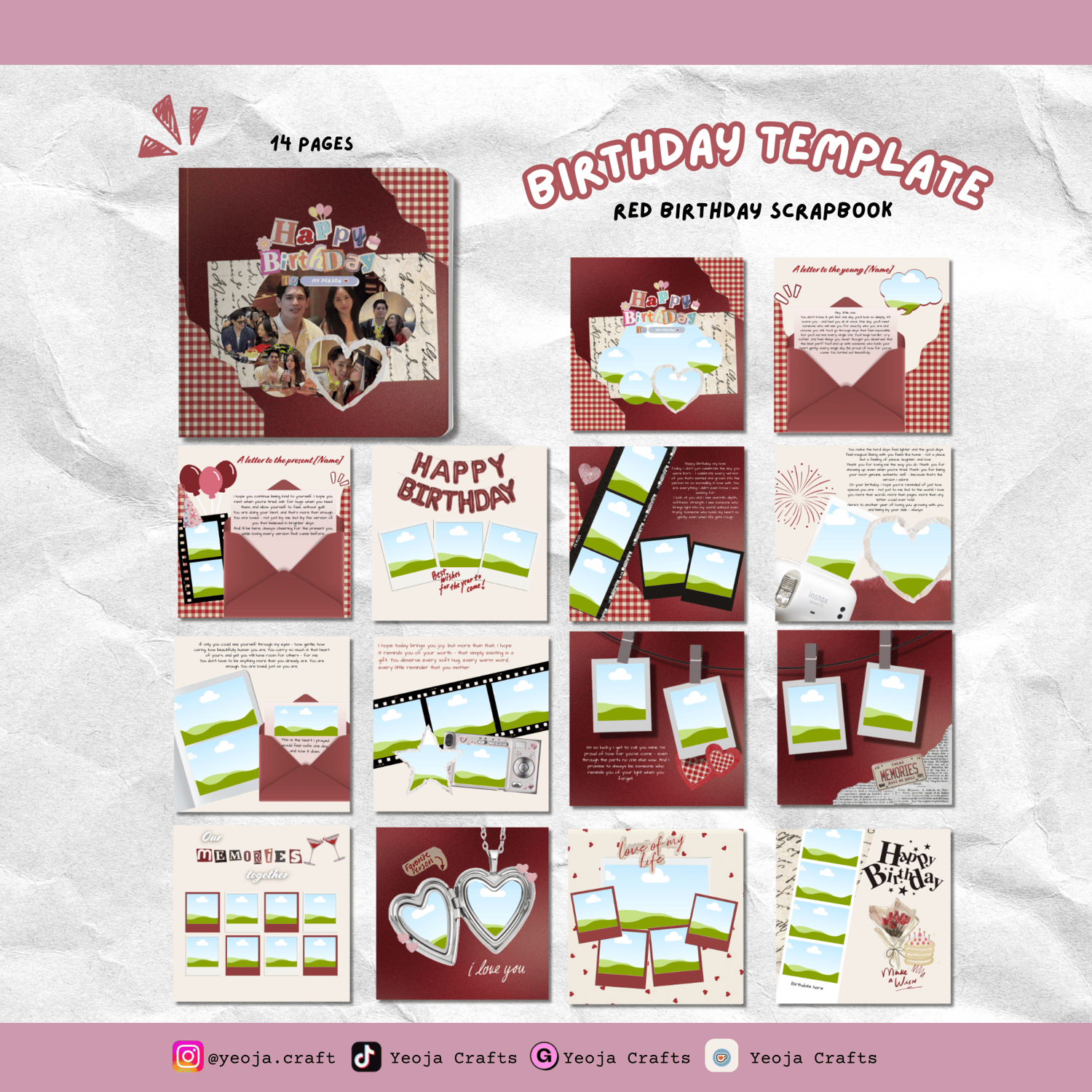 • Red-themed birthday scrapbook pages
