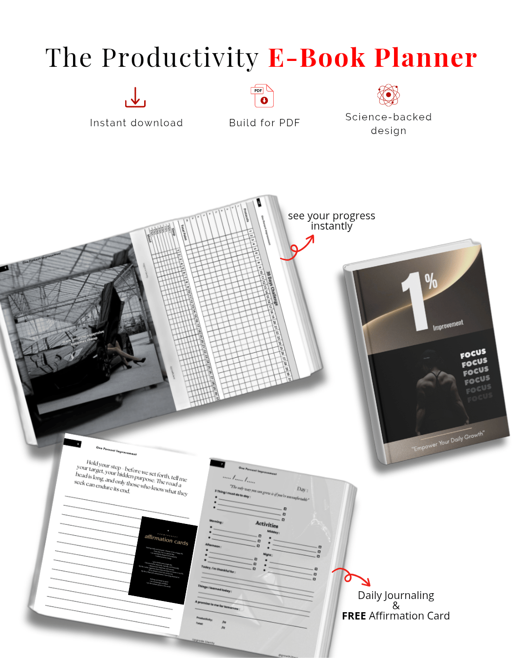 •Every page features inspiring quotes and full-color motivational visuals to keep your energy high, plus BONUS affirmation card to help you build a positive mindset, boost confidence, and stay focused every day.