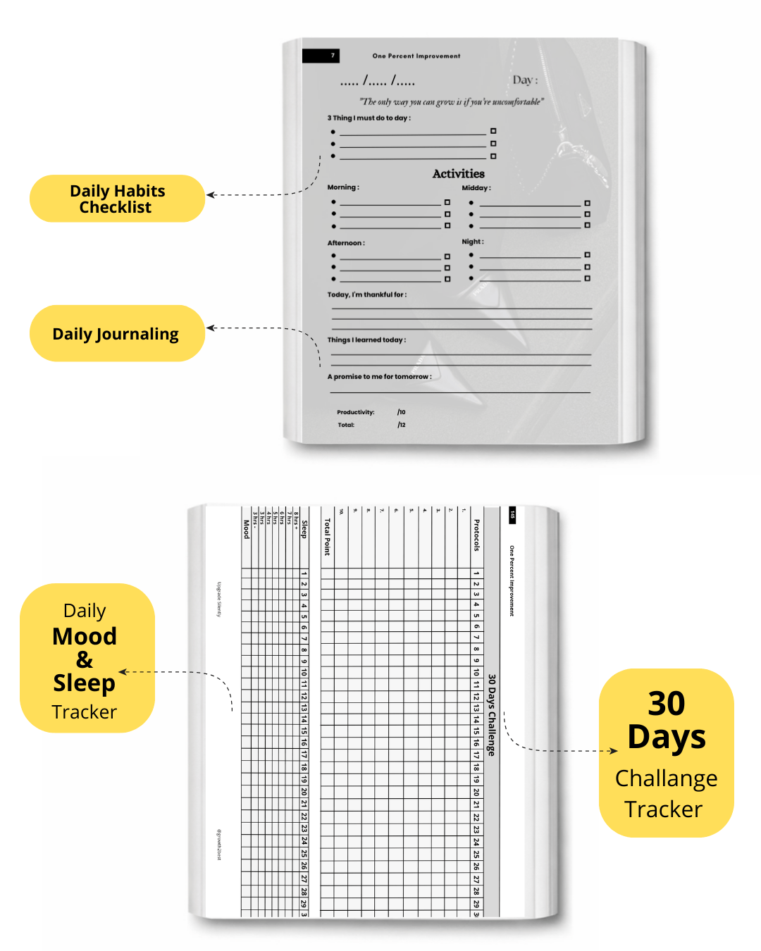 • It includes a 30-Day Discipline Tracker that helps you stay consistent by tracking 10 core habits, monitoring your sleep, and visualizing your progress so you can stay motivated and identify areas for improvement.