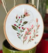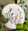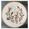 This beginner-friendly embroidery pattern features a modern floral design made with basic stitches. Sized for an 8-inch hoop, it's a perfect project for those new to embroidery. The pattern includes an optional metallic thread for a touch of shine, but it can be easily replaced with another floss color or seed beads.
