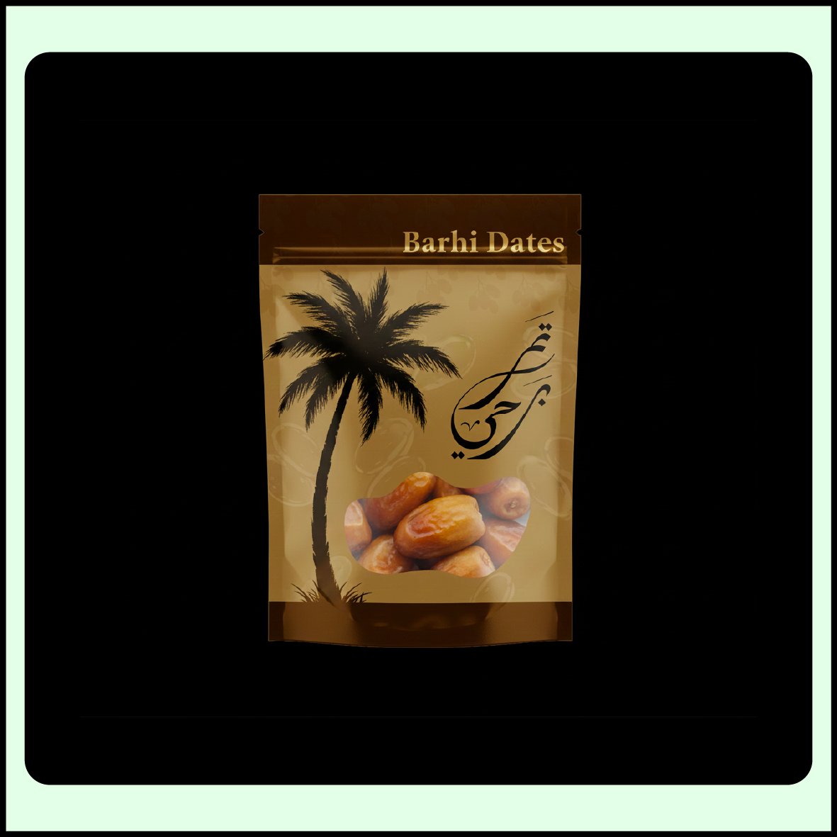 A commercial label with the phrase “Barhi Dates” can be used on various items such as printing, cardboard boxes, tote bags, cartons, and so on.