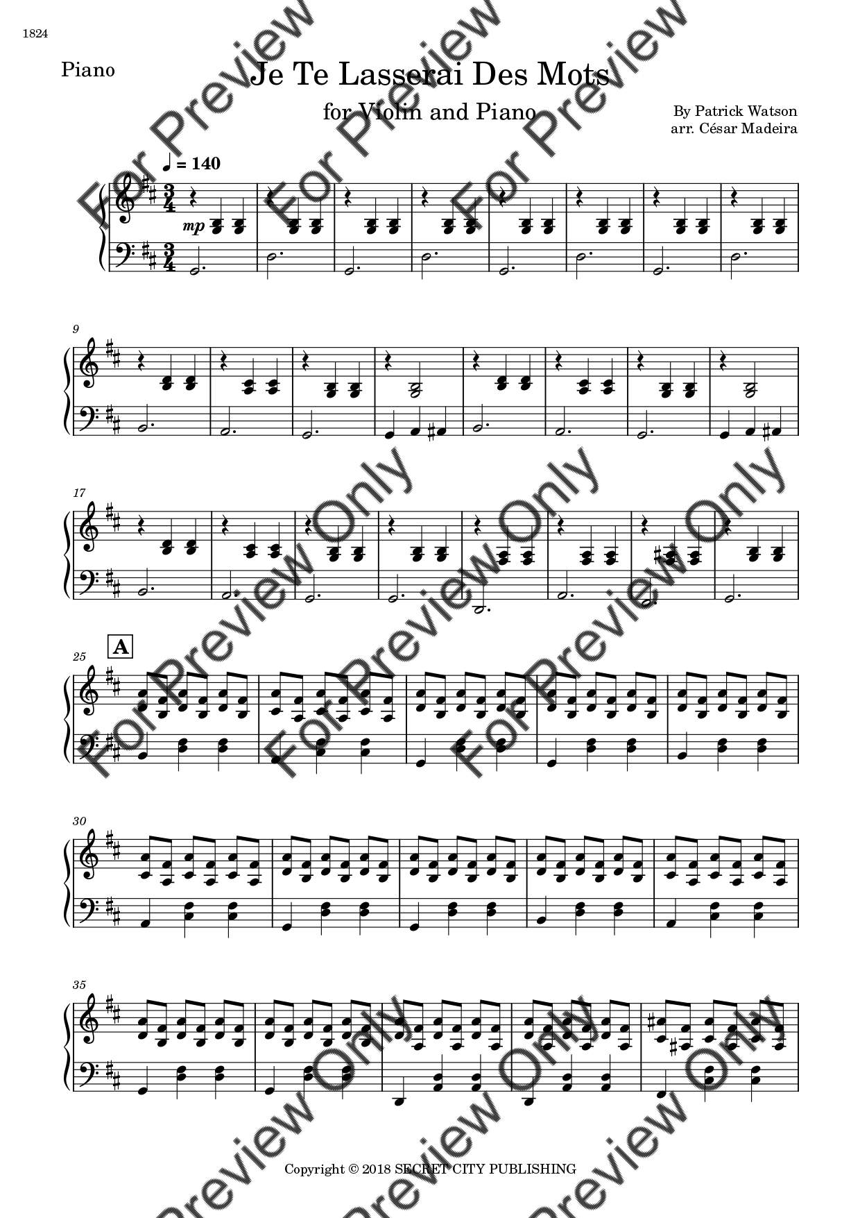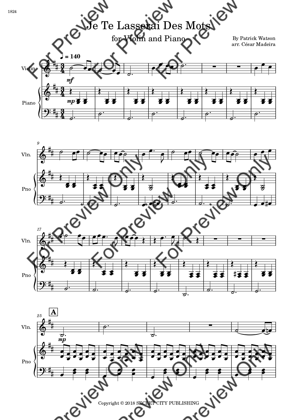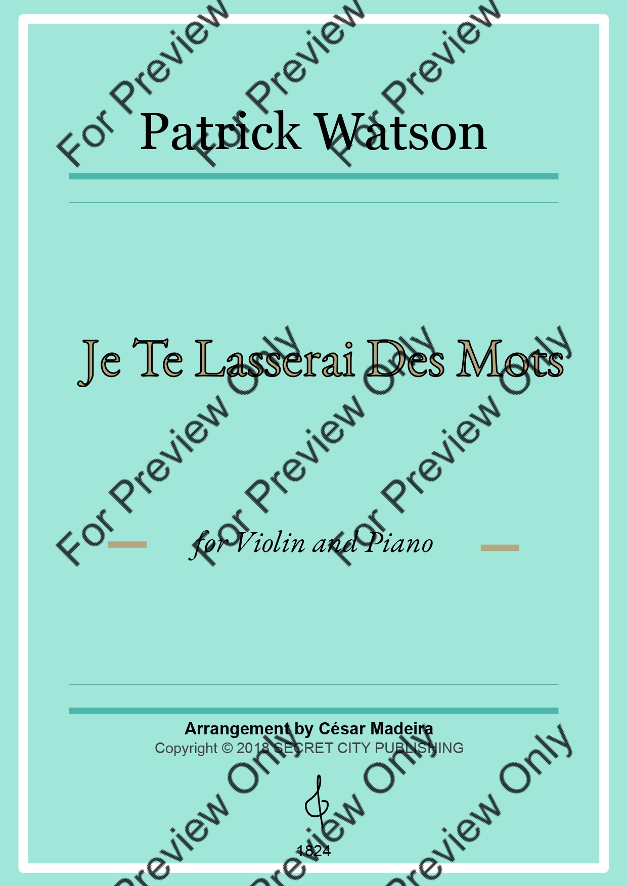 Je Te Laisserai Des Mots by Patrick Watson. Arrangement for Violin and Piano. With Full Score and Individual Parts. Have fun!
