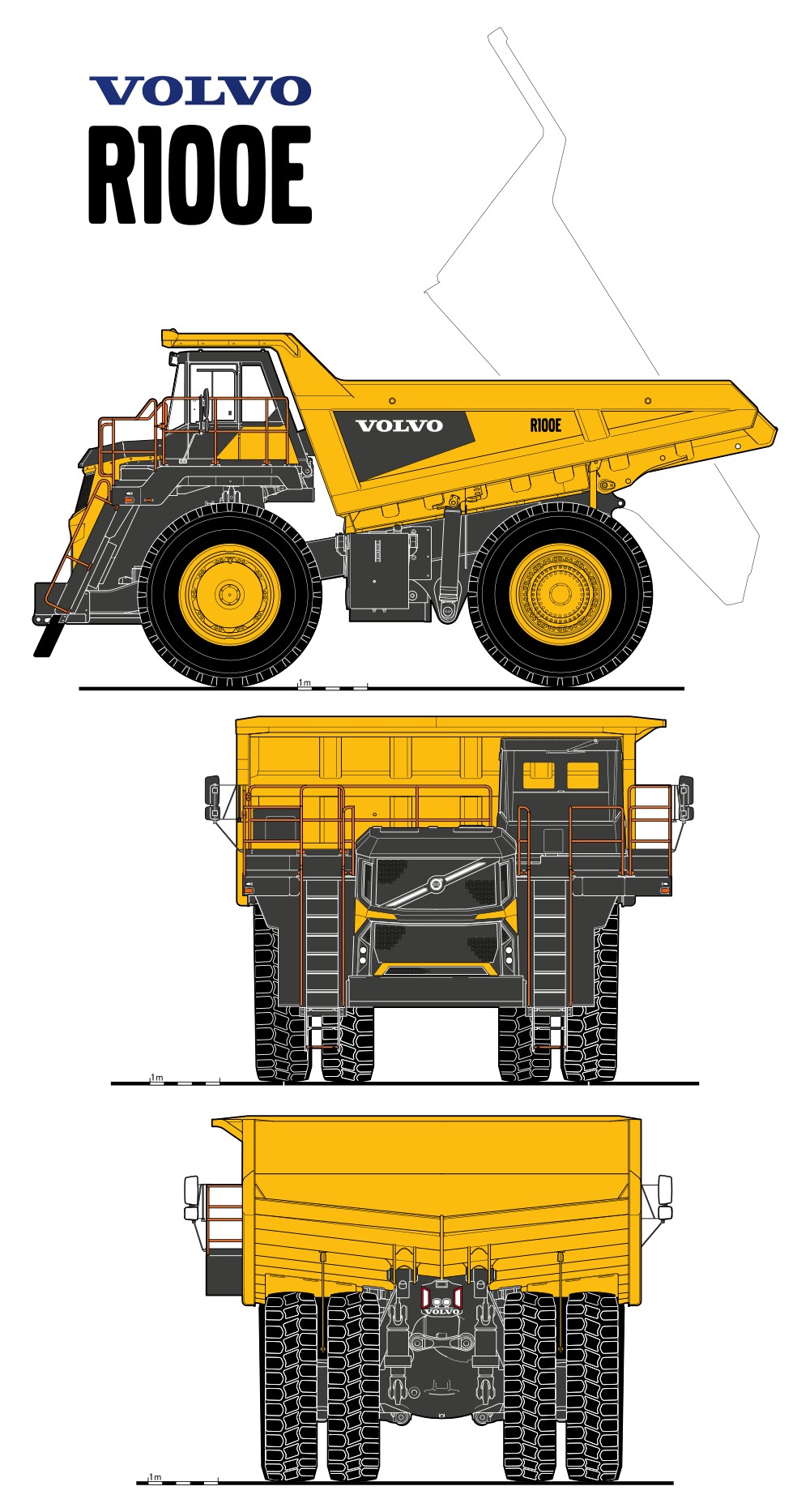 Volvo Rigid Hauler R100E Blueprint PDF SVG Vector Drawing.