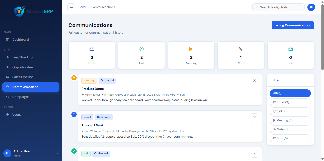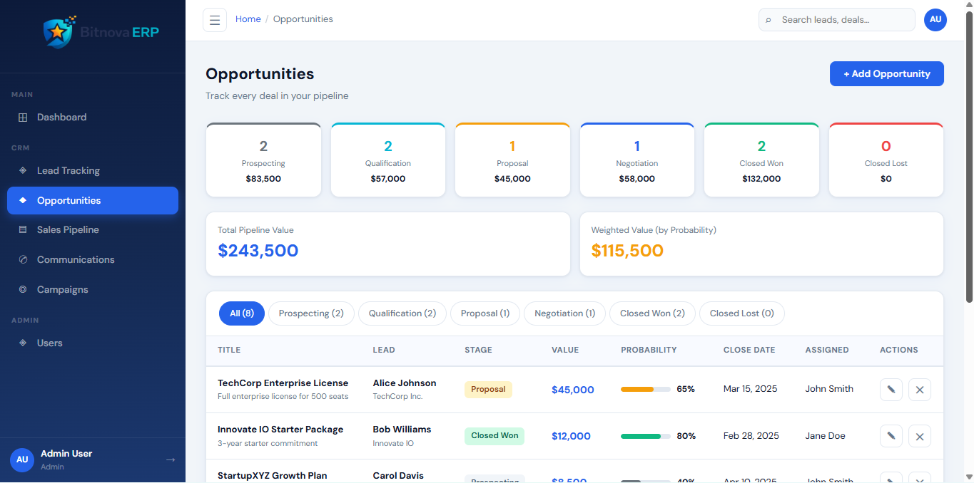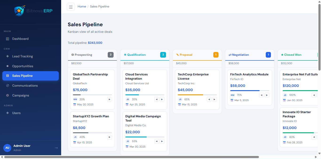 Learn how the Bitnova ERP CRM Module helps businesses manage leads, track opportunities, and build stronger customer relationships.