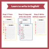 The printables will take your kids from learning new vocabulary to tracing the words and finally writing them in full in both Swedish and English.