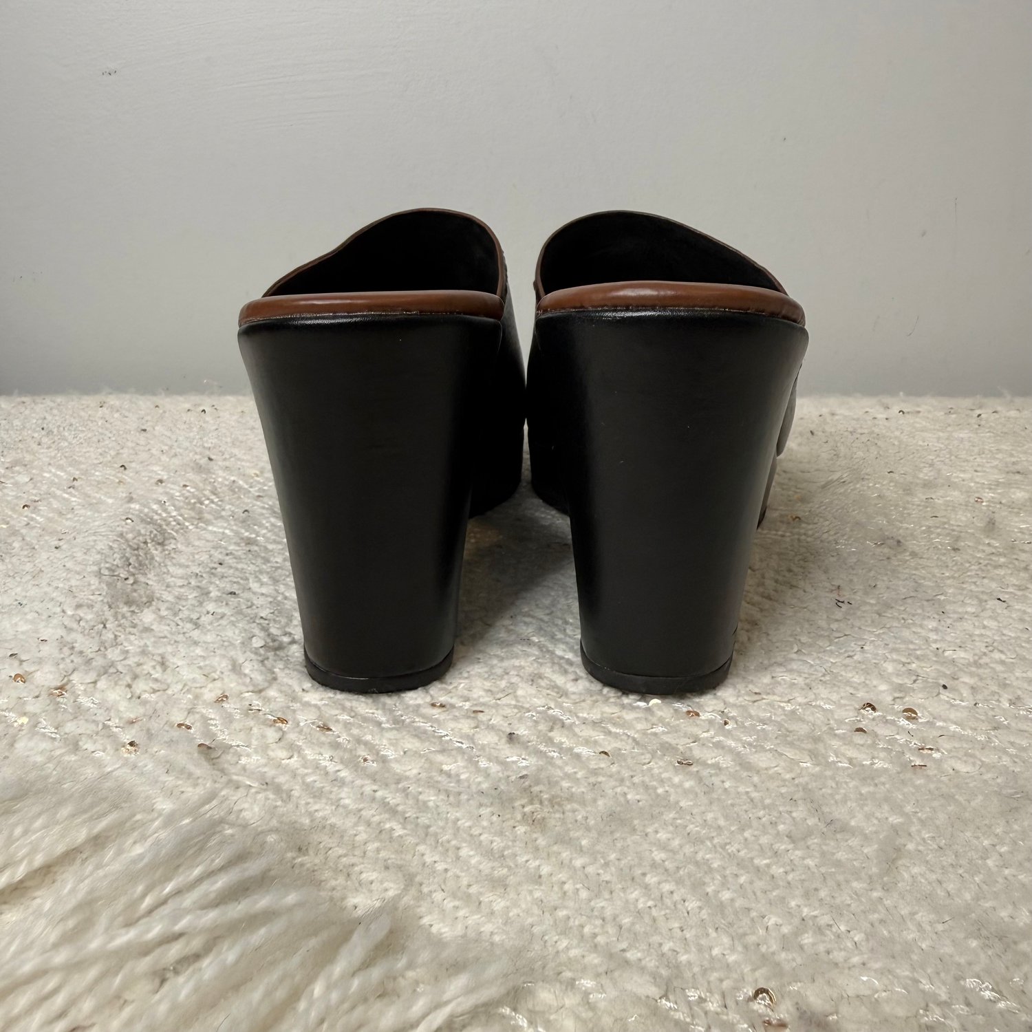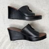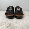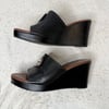 Brighton black and brown leather platform wedge heel open toe sandals - size 8 1/2