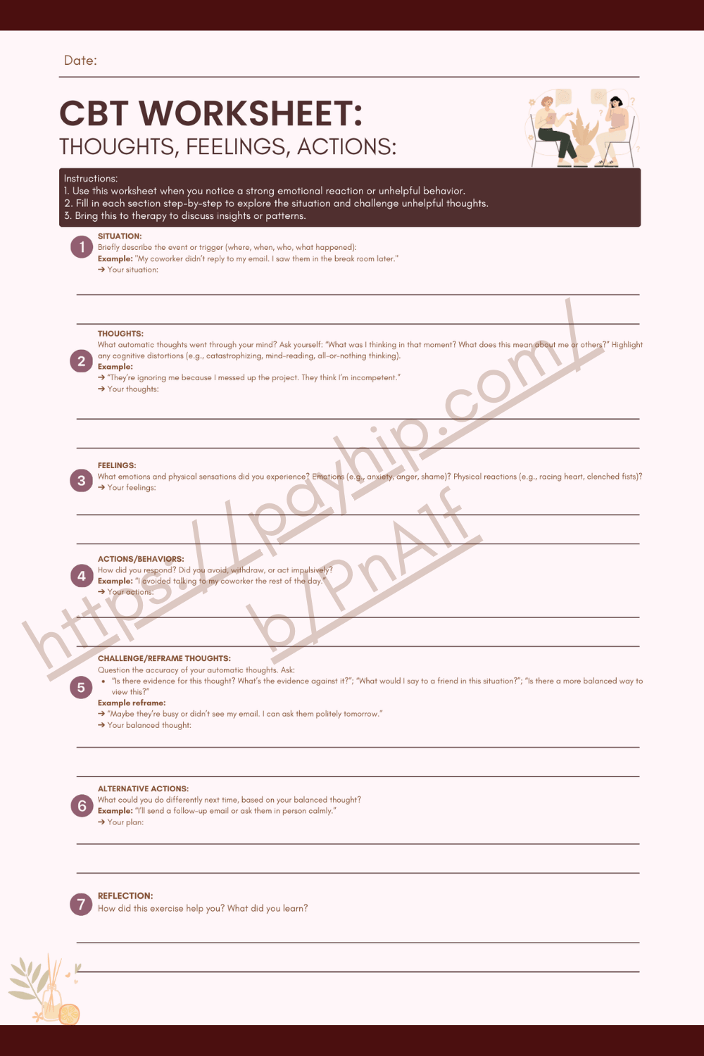 CBT Worksheet: Thoughts, Feelings, Actions (PDF)