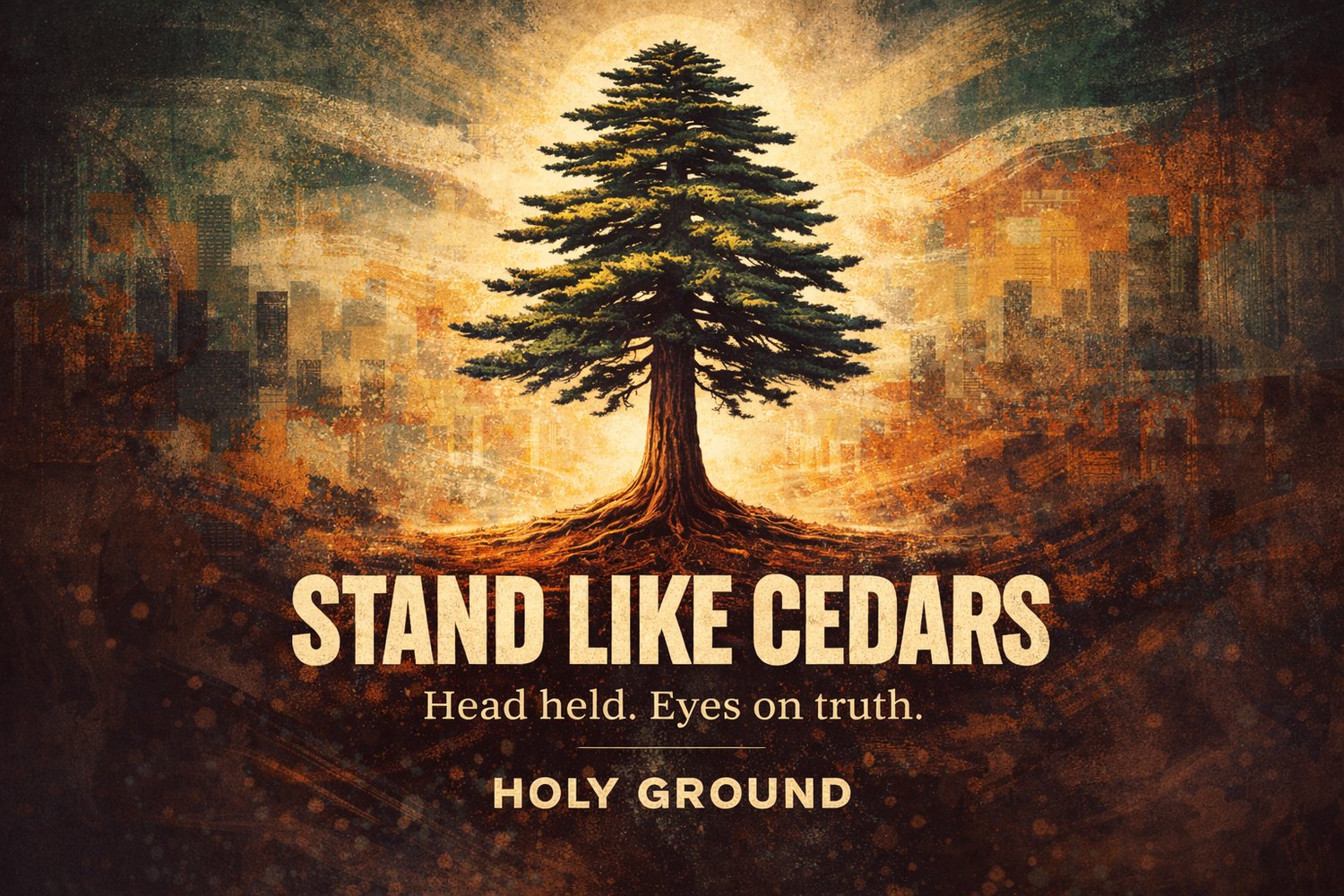 Stand Like Cedars rides a smooth, funky hip-hop beat while delivering a message of resilience and upright living. Inspired by the imagery of cedars—strong, rooted, and unshaken—this track calls listeners to stand tall with heads held high and eyes fixed on truth. The phrase “Holy Ground” anchors the song, reminding us that where we stand in truth becomes sacred space.