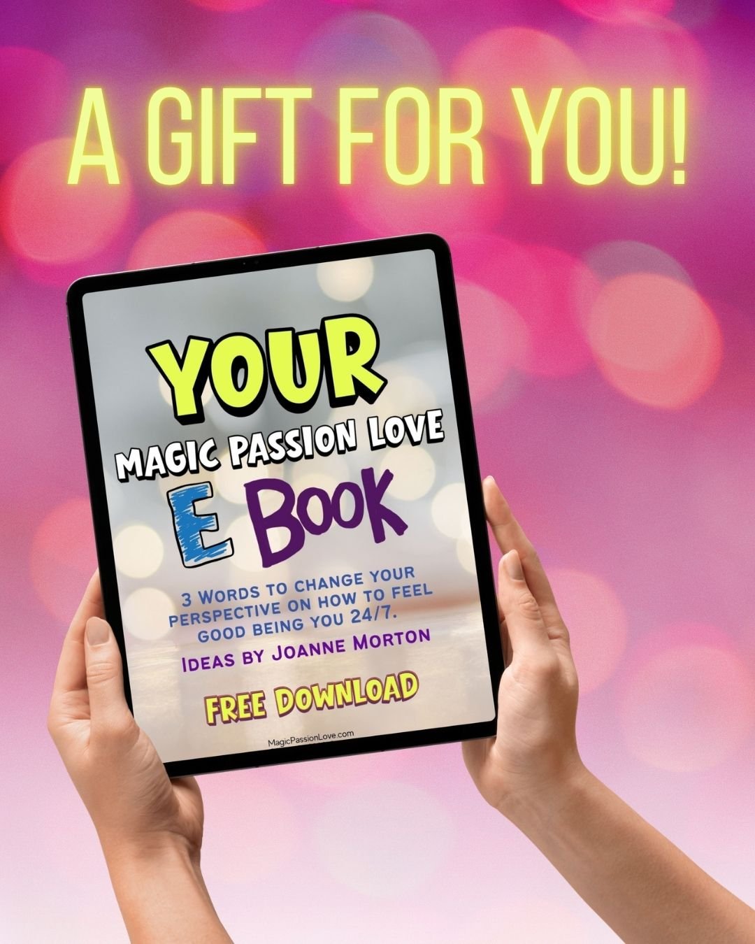 This e-book introduces the YOU to Magic Passion Love—a simple, powerful way to shift your energy by tapping into your creativity (Magic), connecting with what excites you (Passion), and choosing how you show up in the world (Love).