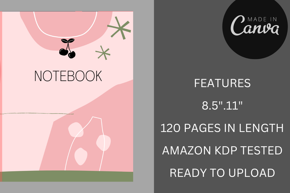CHERRY KDP LINED PAPER INTERIOR+COVER, KDP JOURNAL PAPER, KDP LEARN TO WRITE, KDP KIDS JOURNAL, JOURNAL NOTEBOOK MOCKUPS, ESTY EBOOK, LOW CONTENT BOOK