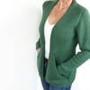 A relaxed open cardigan with gentle waist shaping, Cross Pockets also features a flattering V-neck and super useful big pockets. The little crosses in the band-pattern are repeated with the shape of the pockets and all that texture is perfect for a yarn with superior stitch definition. Offering a professional shoulder-solution and beautifully fitting sleeve caps, this design is suitable for intermediate knitters.
