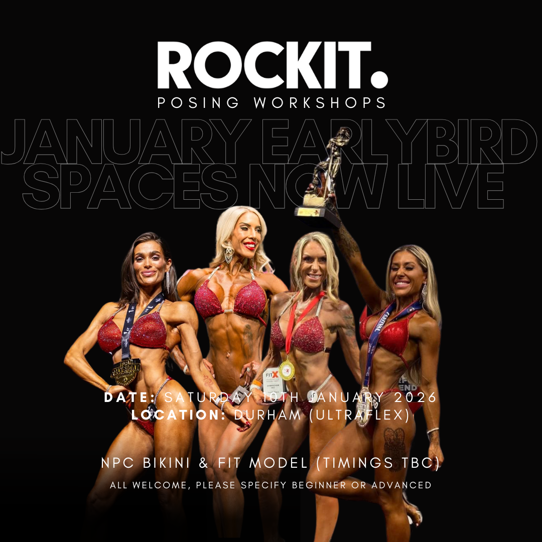 We will be covering primarily; mandatory pose tweaks, stamina work, comparison rounds and the bikini walk. If you are a complete beginner, be advised that a 1-1 class or posing assessment may be needed for better understanding at the workshop!