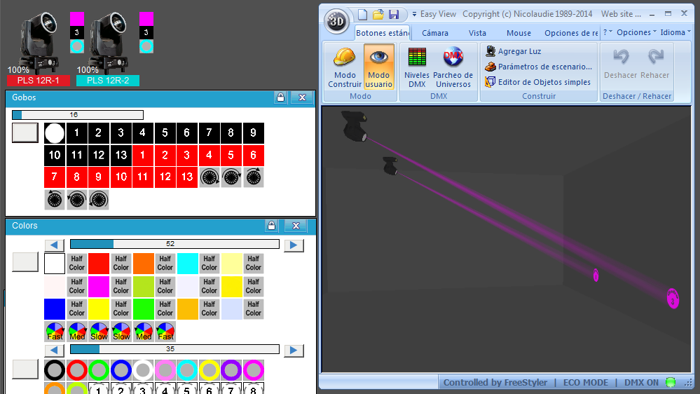 Esta Librería SSL2 está optimizada para trabajar con Magic 3d Easy View. Es decir para ver una representación 3D de las secuencias que estemos realizando con Freestyler, QLC+ o cualquier otro soft que se conecte con Magic 3d.