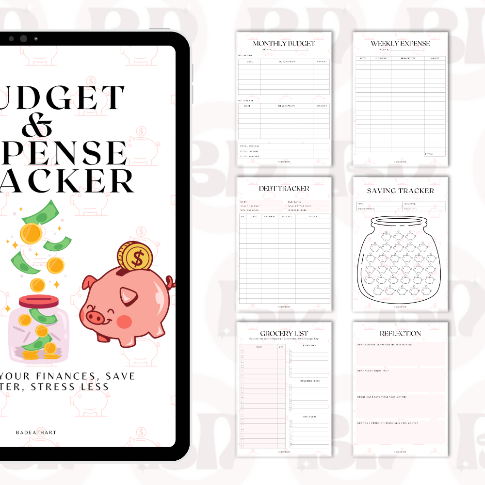 Take control of your money with this printable & digital-ready Budget & Expense Tracker. Whether you’re a mom, student, freelancer, or anyone wanting financial clarity, this tracker helps you: