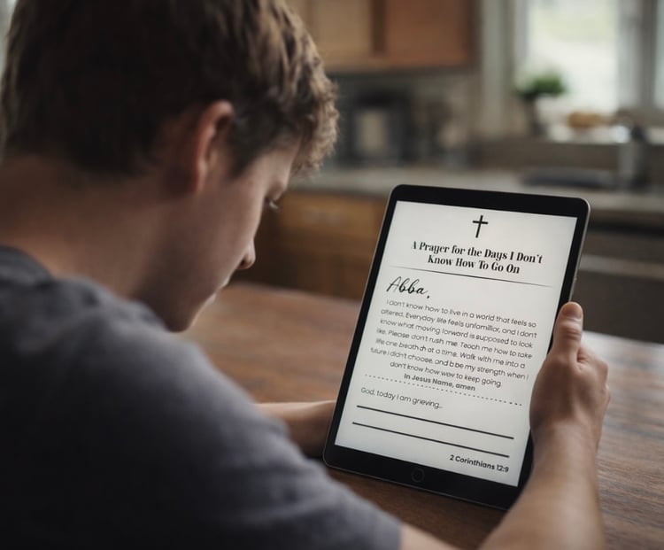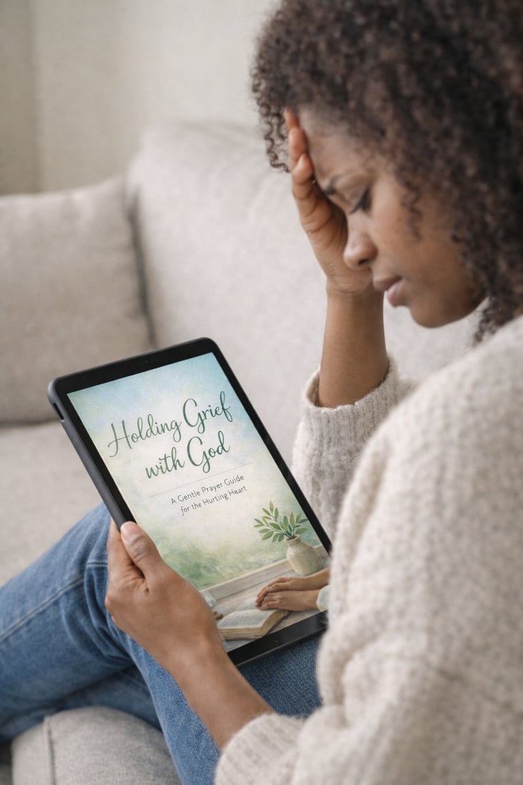 Holding Grief with God is a prayer guide created to help you sit with God through grief, not to pray your grief away. It was written to meet you in the quiet, confusing, and tender places where words feel hard to find.