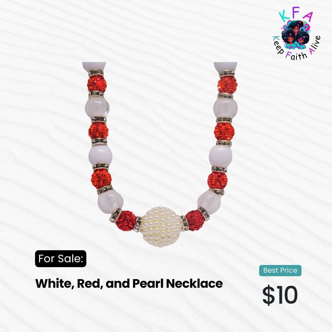 Elevate your ensemble with the exquisite charm of the White, Red, and Pearl Necklace, a masterpiece of timeless elegance.