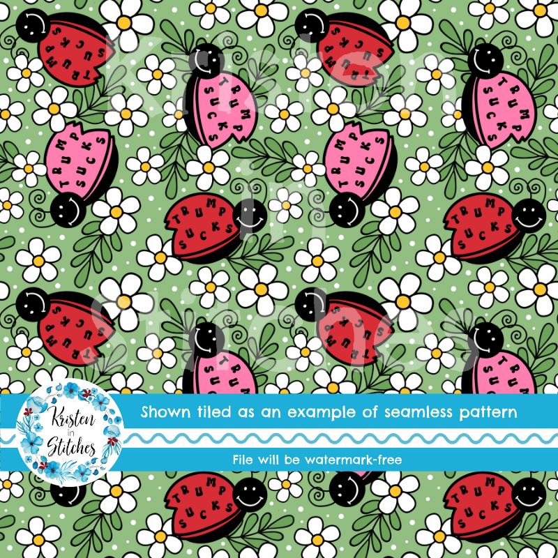 Subtle Ladybugs FDT Trump Sucks Floral Seamless Pattern