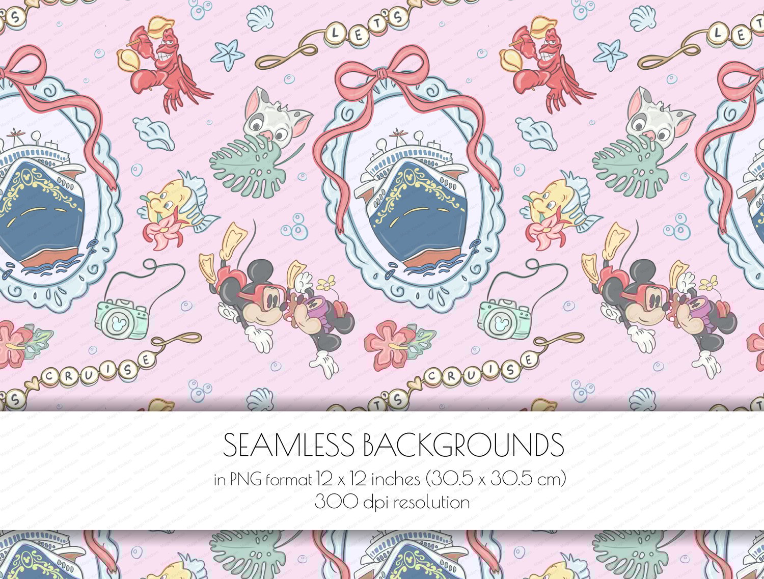 1 Disney Let's Cruise PNG Seamlessbackground in PNG format 12 x 12 inches (30.5 x 30.5 cm) 300 dpi resolution .