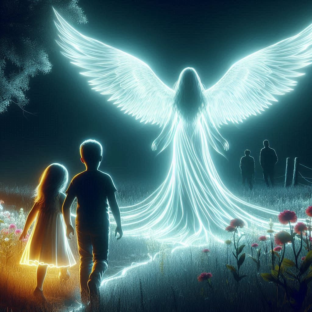 Download Angel Protecting Two Children Wallpaper PDF. Two images.1024 x 1024